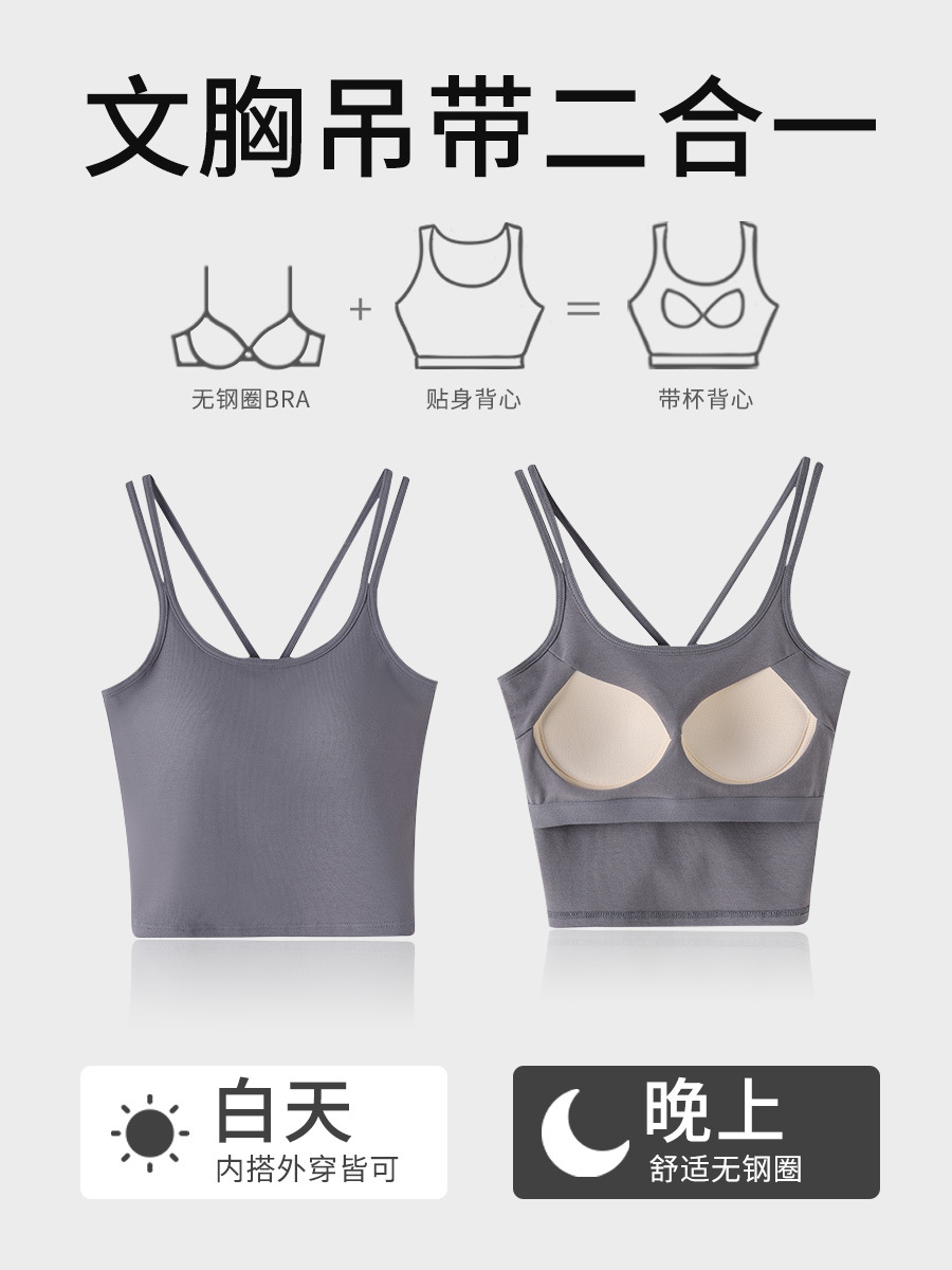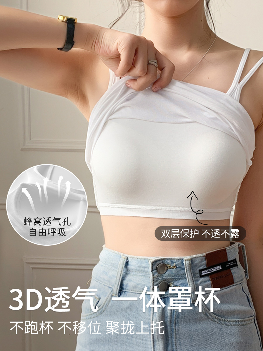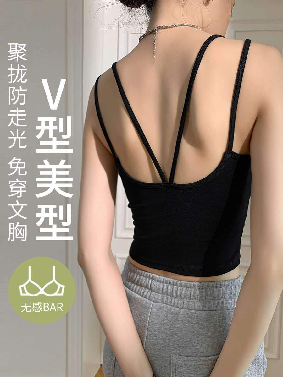 双肩带小吊带背心女外穿带胸垫一体式美背打底防走光打底女士上衣