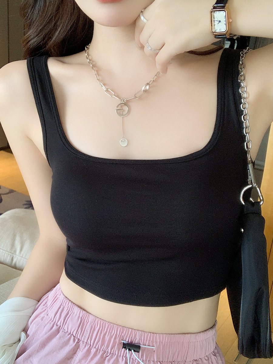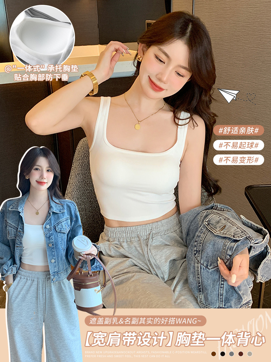 带胸垫吊带背心女夏内搭外穿罩杯一体式露脐无袖百搭短款打底上衣