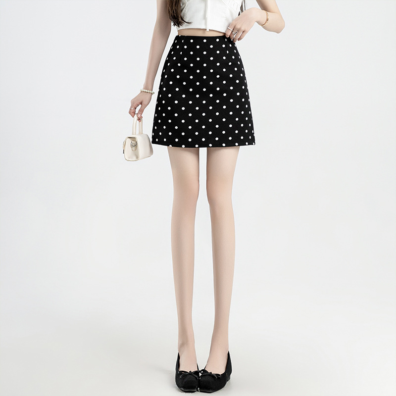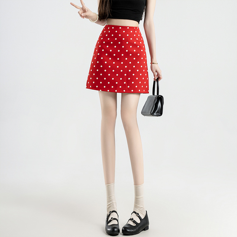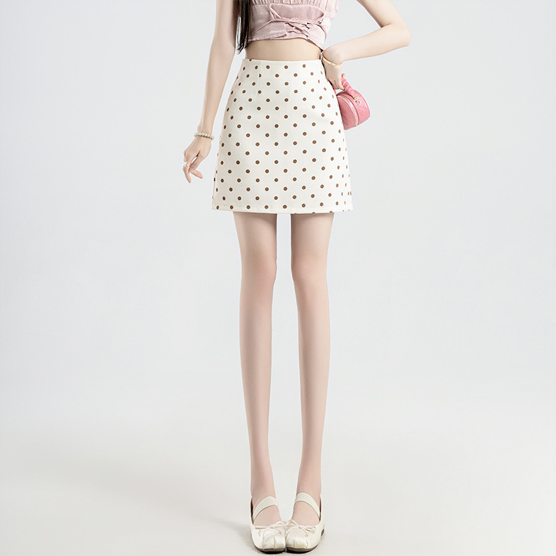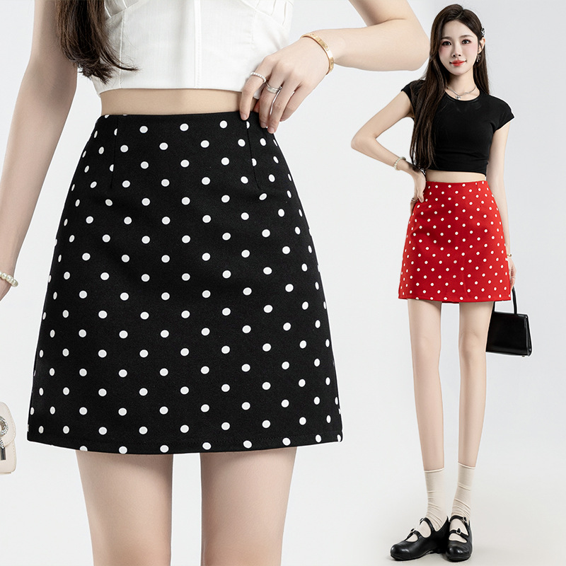 波点半身裙女夏季新款一步开叉裙高腰包臀a字短裙褶皱西装短裙