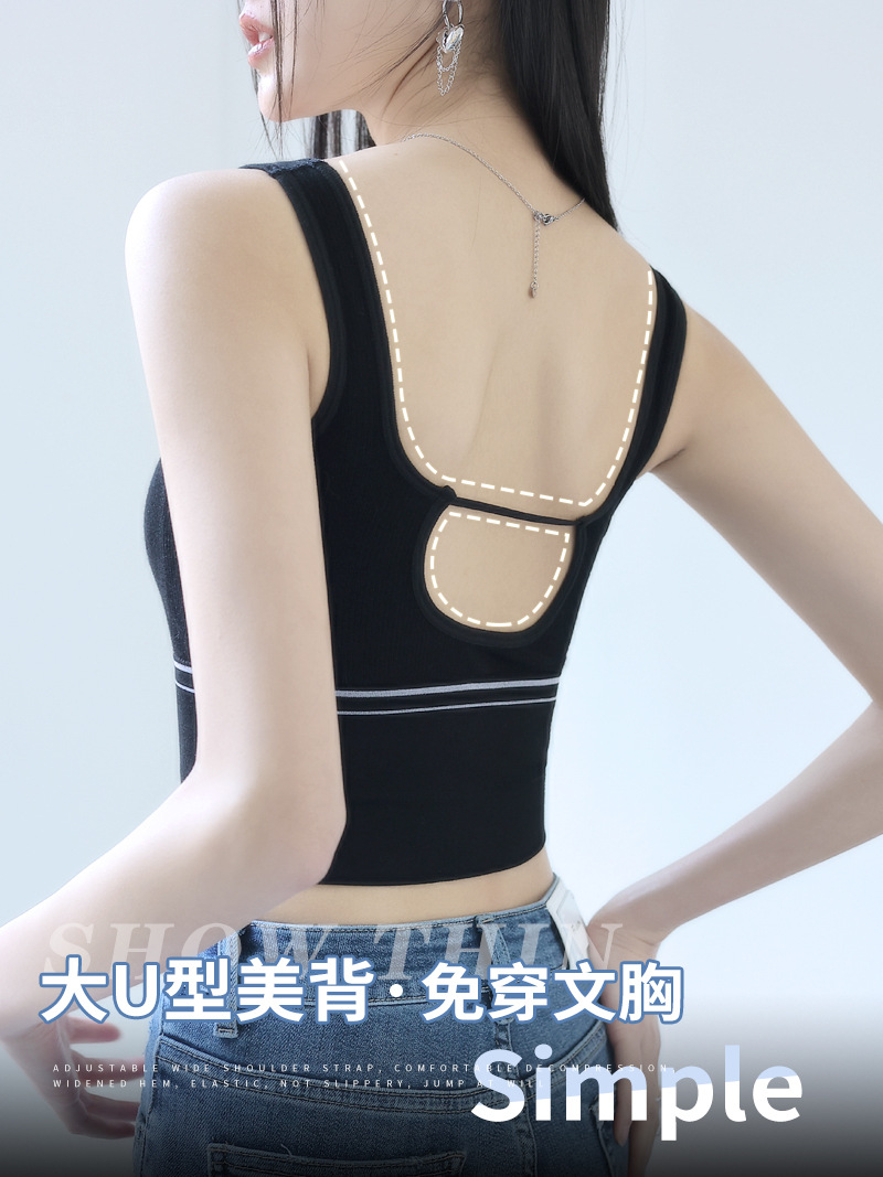 吊带女U型美背夏季背心内搭带胸垫设计感小众裹胸打底无袖上衣女