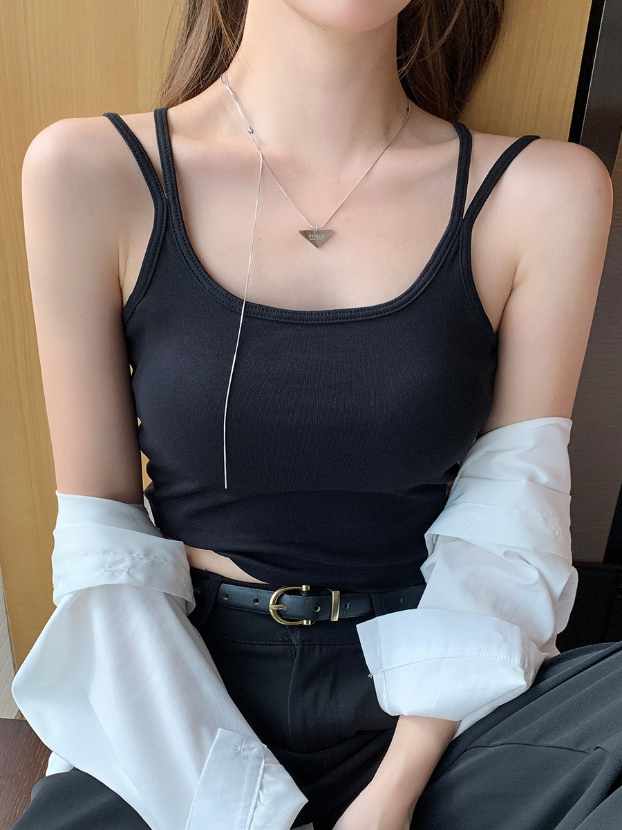 免穿内衣小吊带背心女夏季外穿内搭带胸垫一体式纯欲辣妹打底上衣