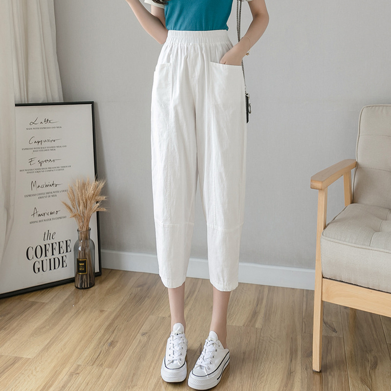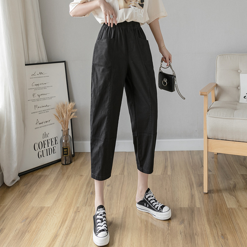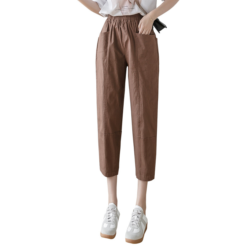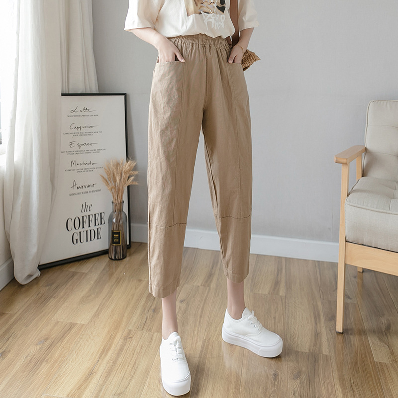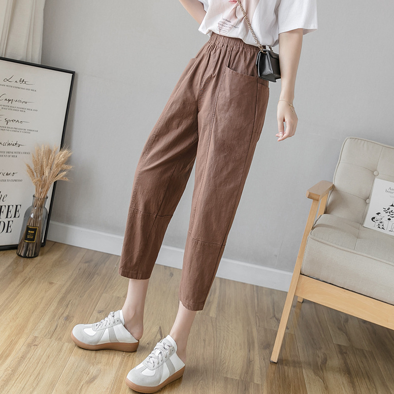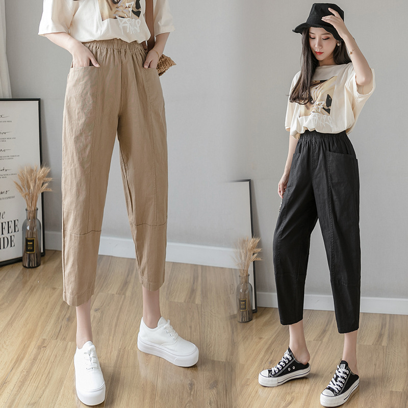 纯色棉麻休闲裤女韩版宽松大码休闲哈伦裤百搭学生萝卜裤七分裤女
