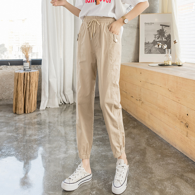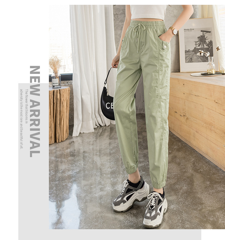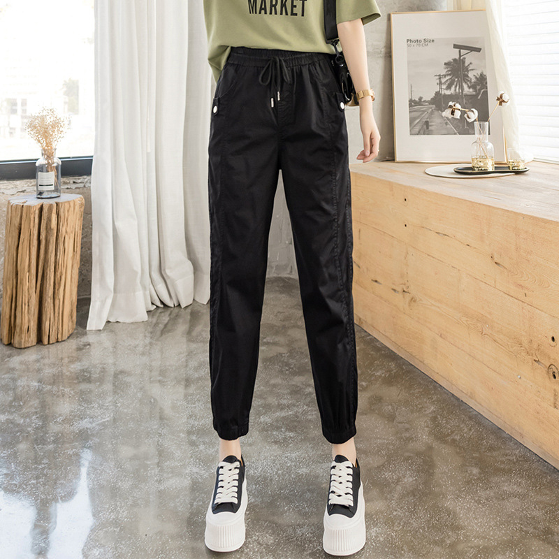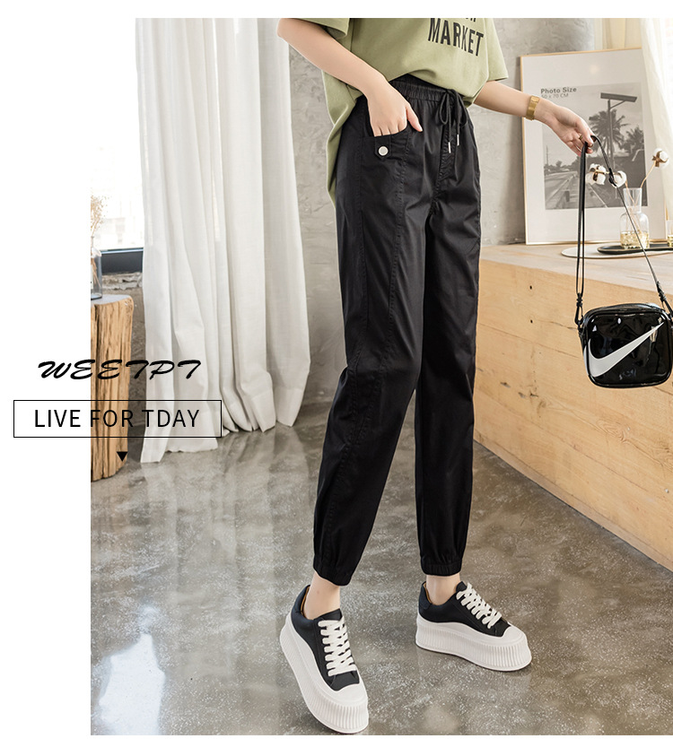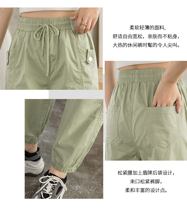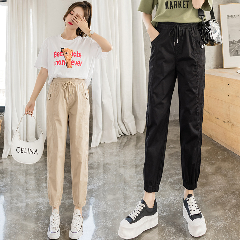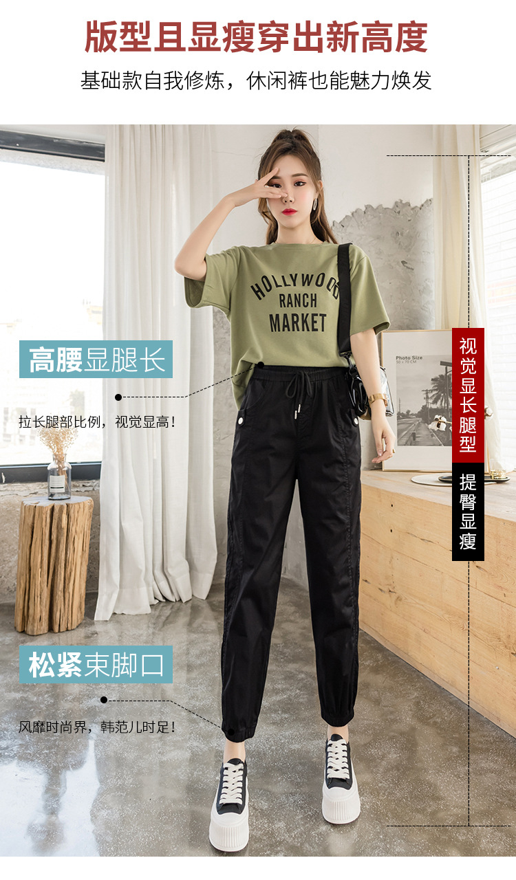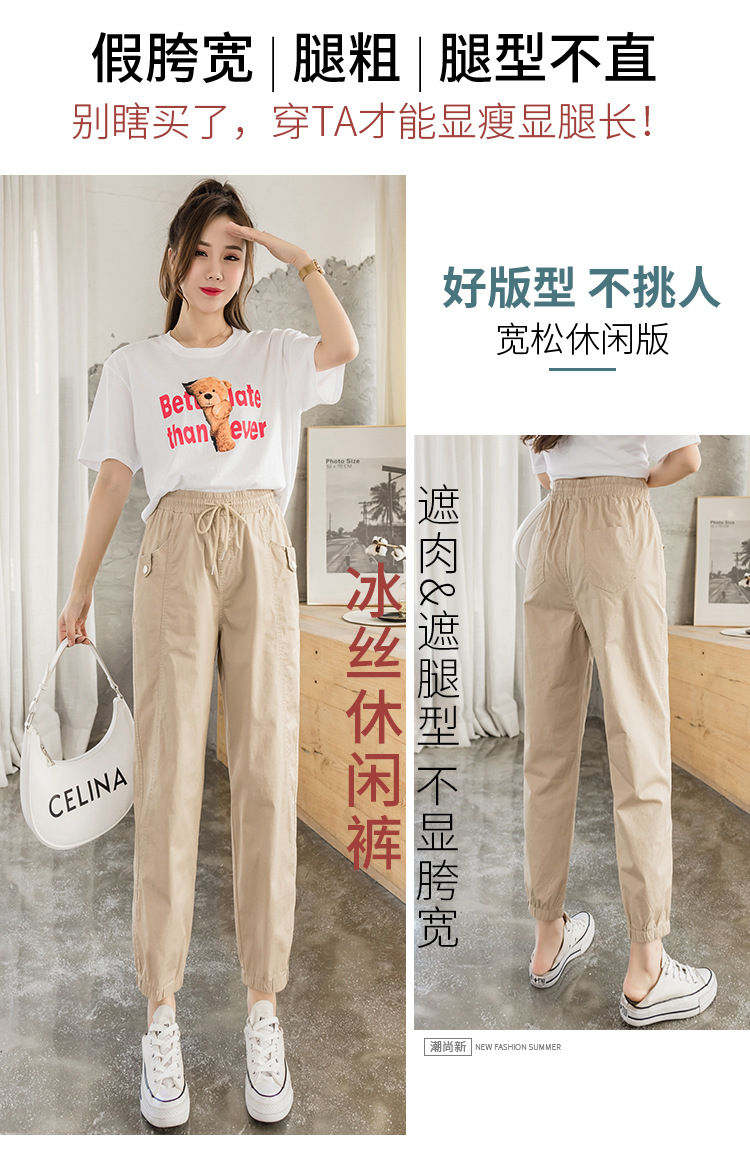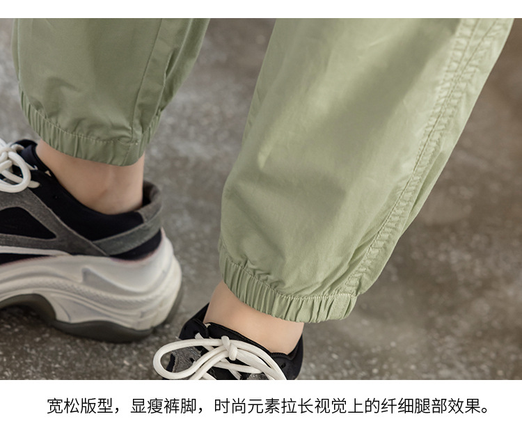 洗水棉休闲裤女夏新款韩版高腰宽松百搭九分裤工装哈伦裤女
