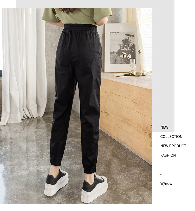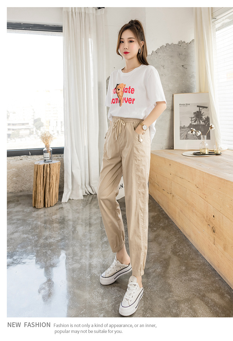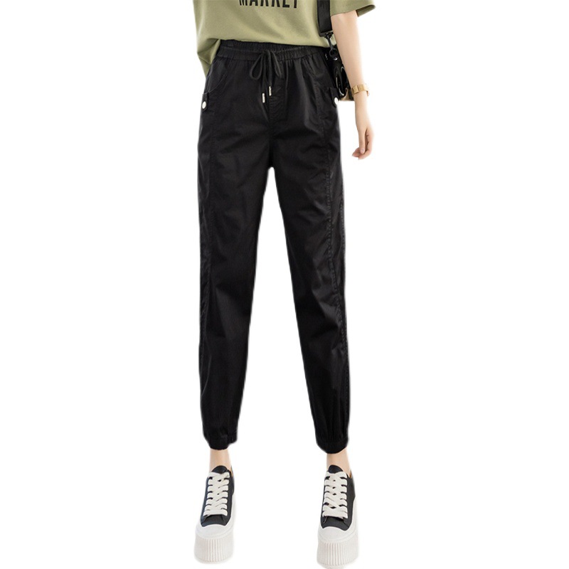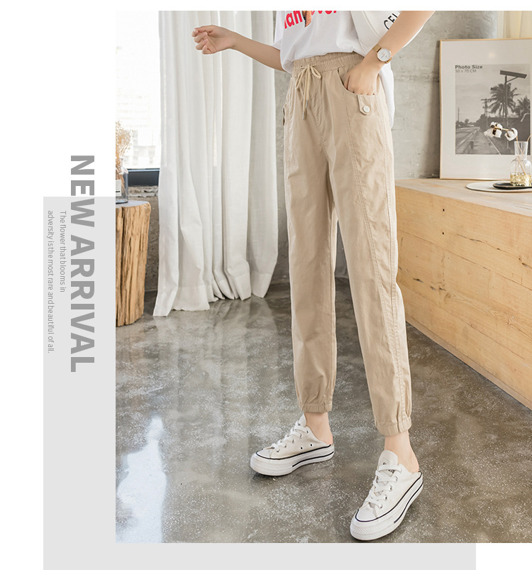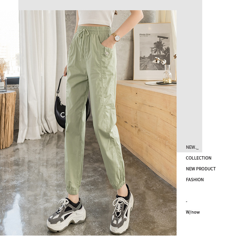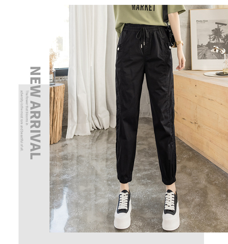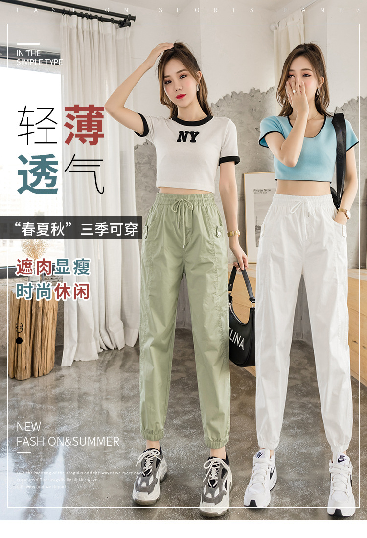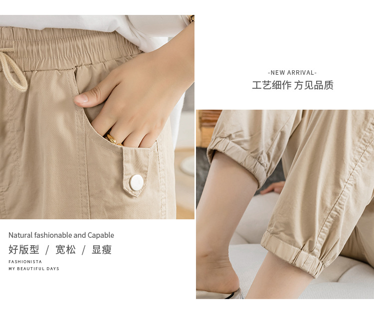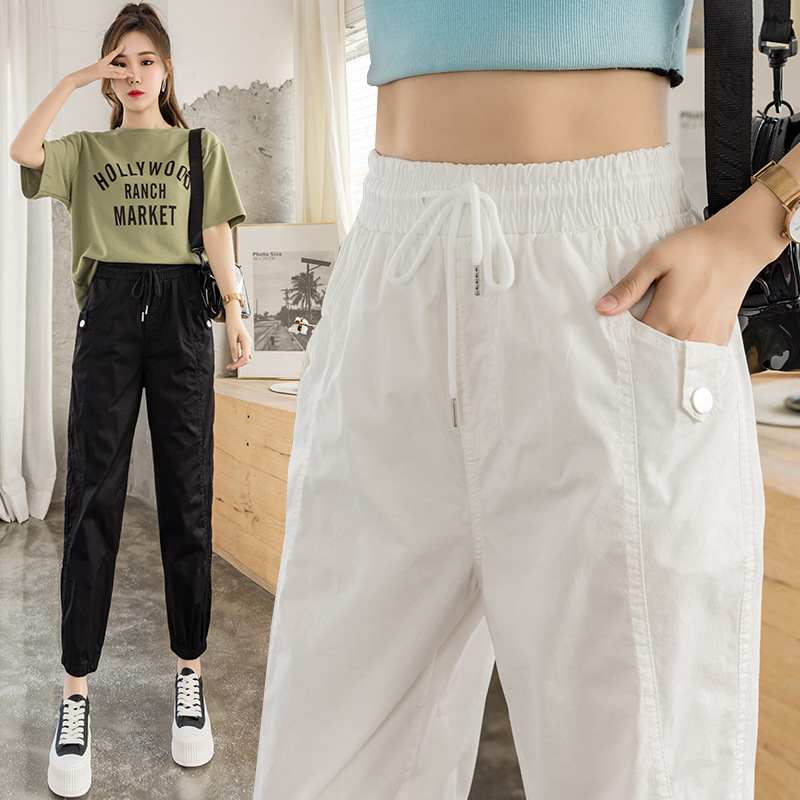 洗水棉休闲裤女夏新款韩版高腰宽松百搭九分裤工装哈伦裤女