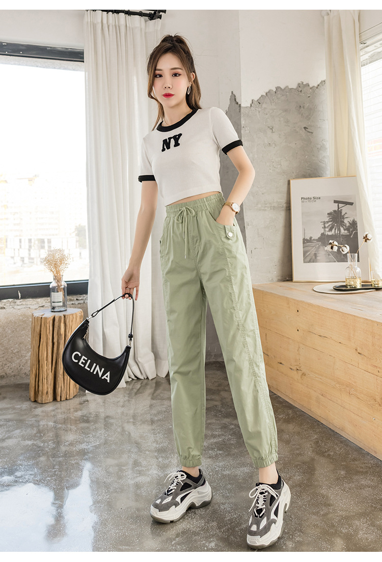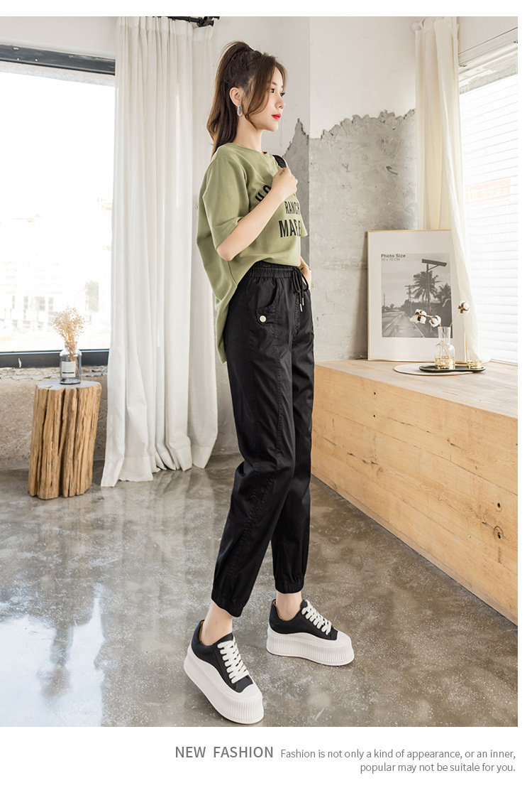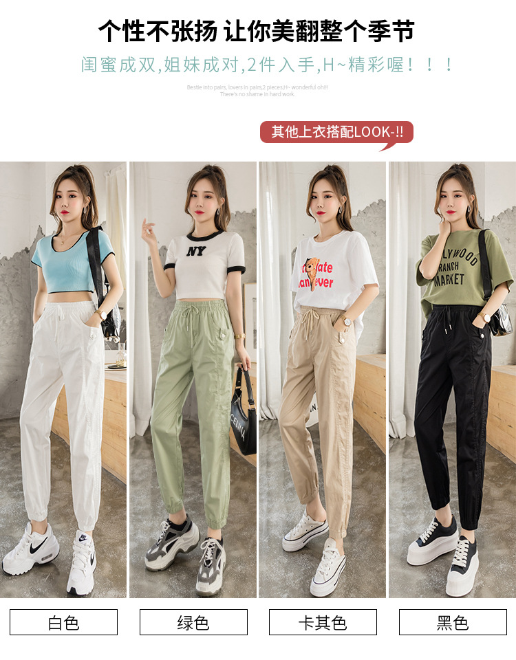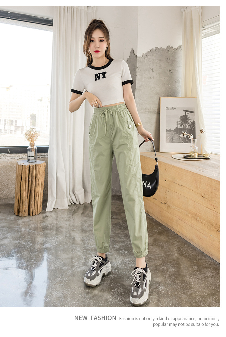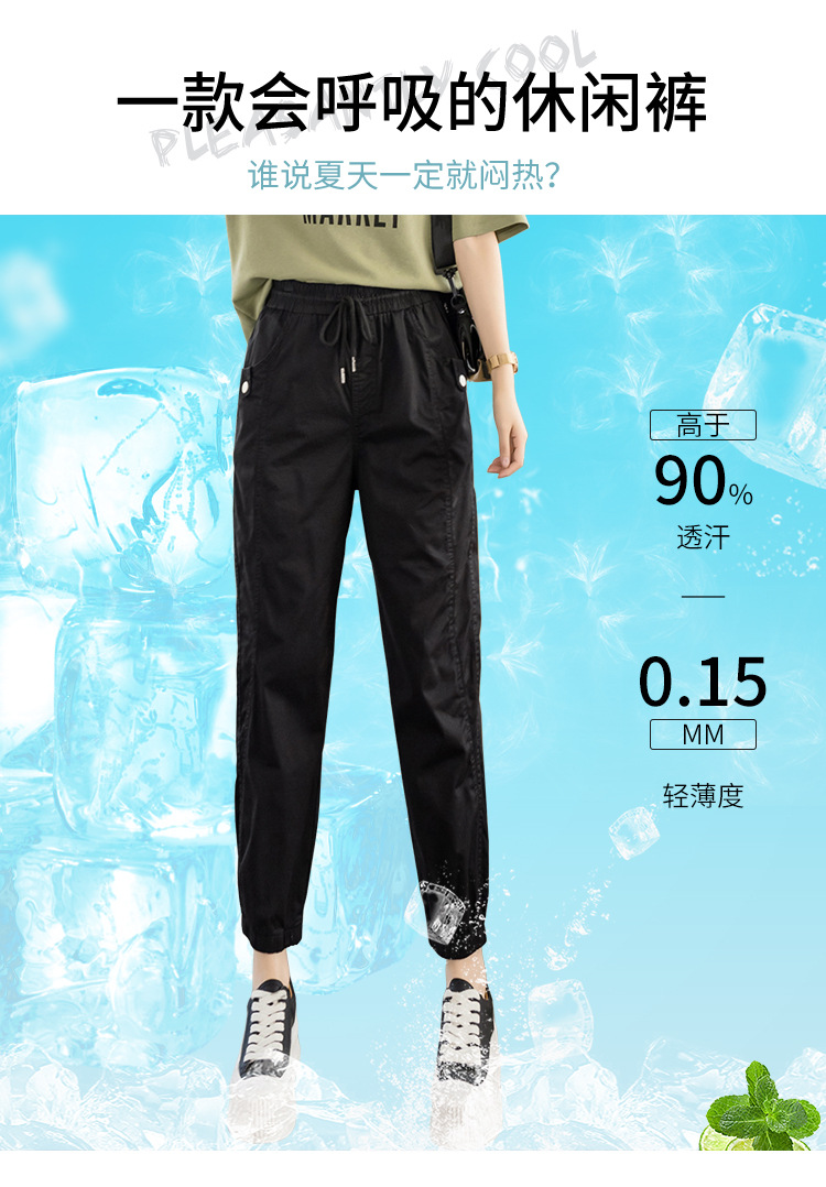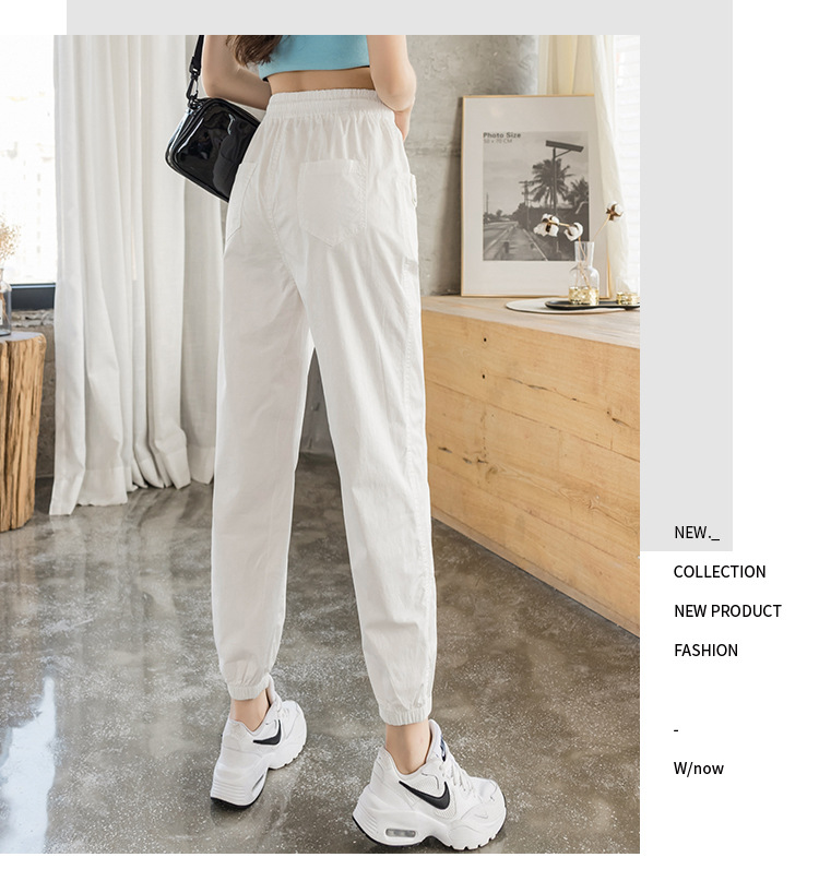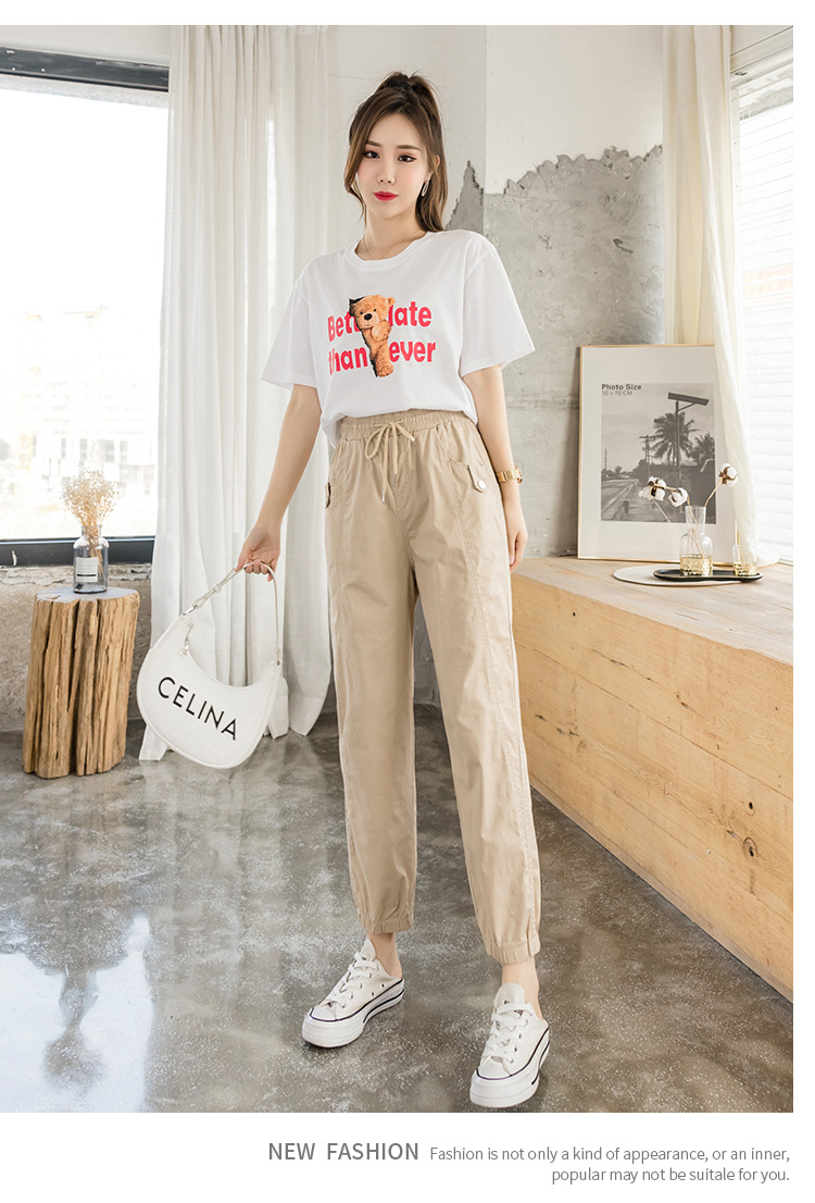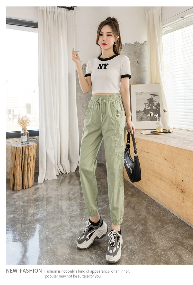 洗水棉休闲裤女夏新款韩版高腰宽松百搭九分裤工装哈伦裤女