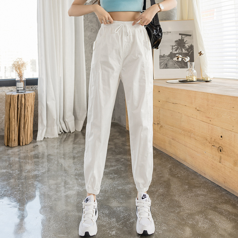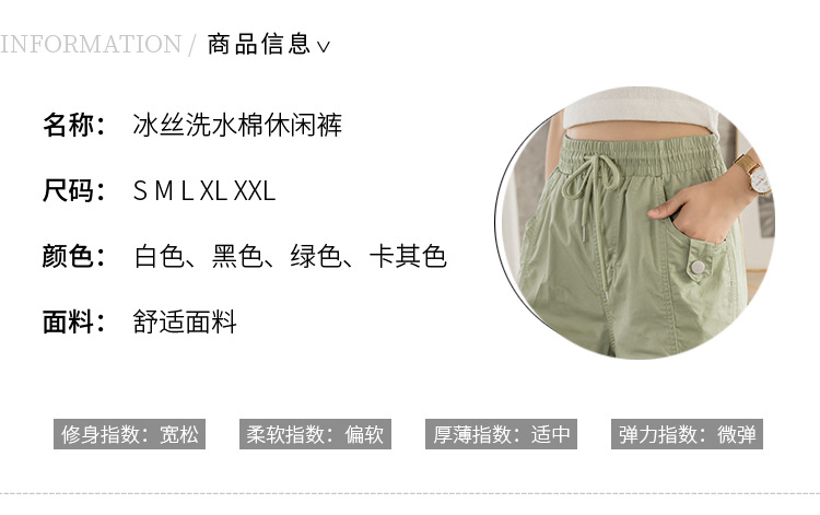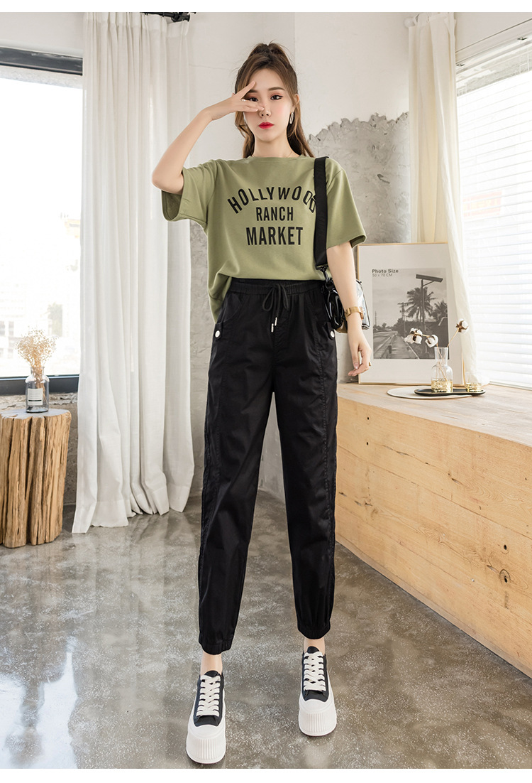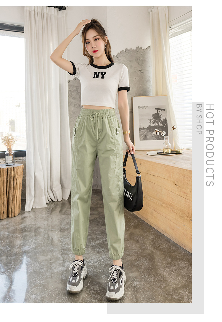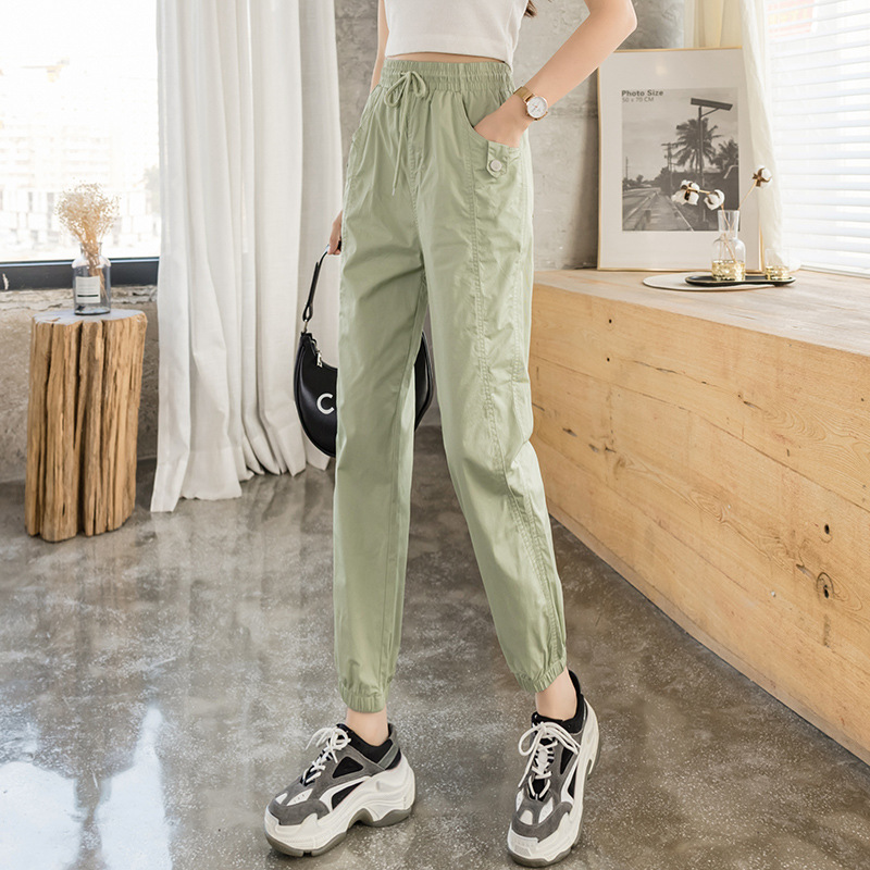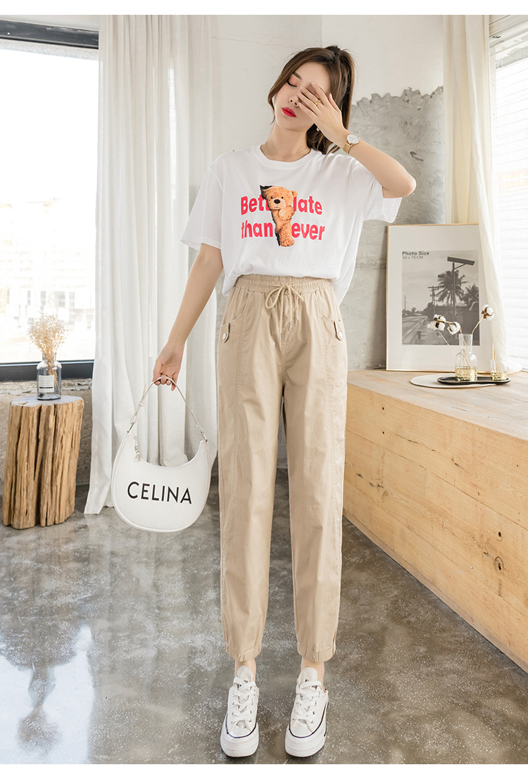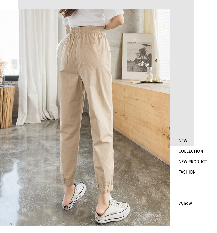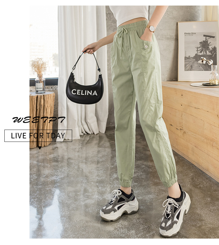 洗水棉休闲裤女夏新款韩版高腰宽松百搭九分裤工装哈伦裤女