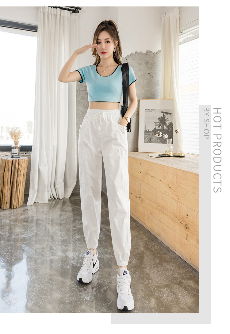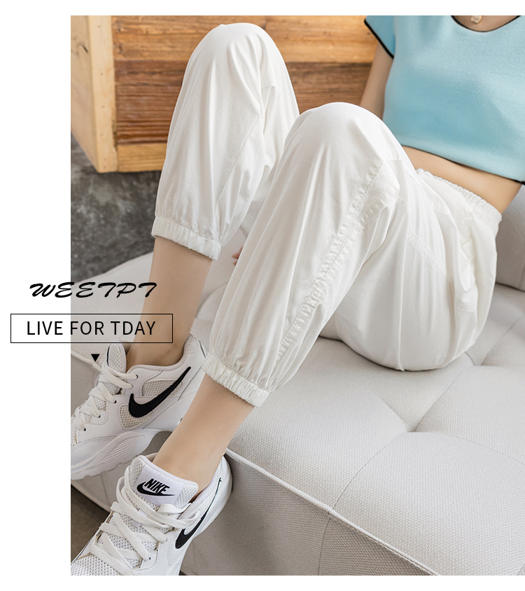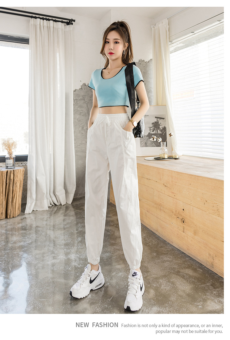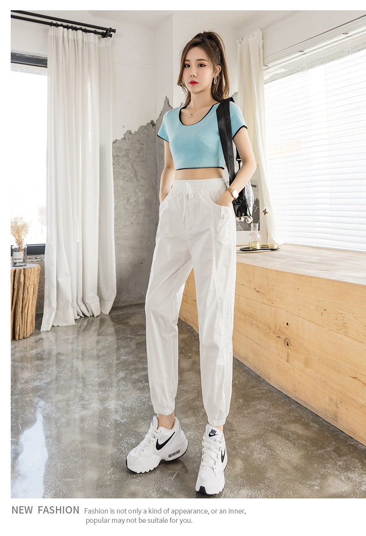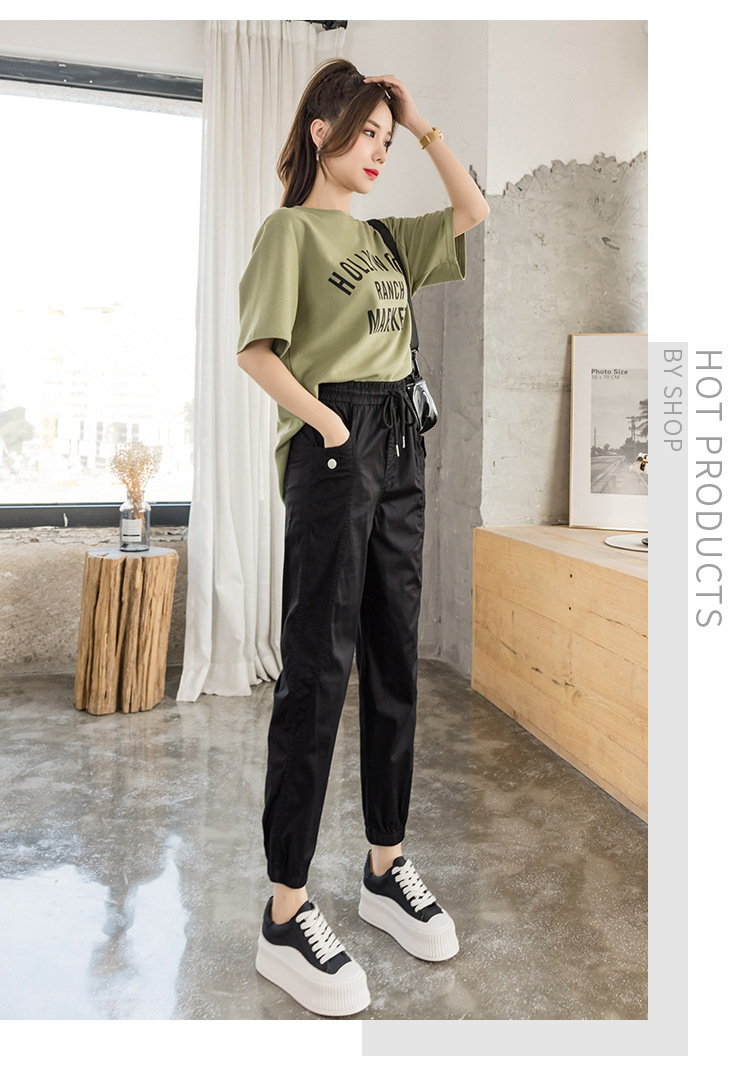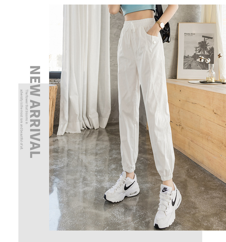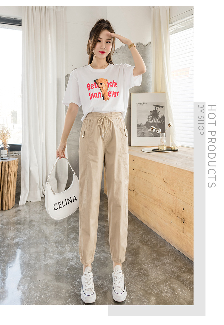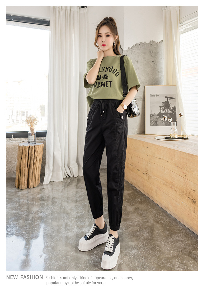 洗水棉休闲裤女夏新款韩版高腰宽松百搭九分裤工装哈伦裤女