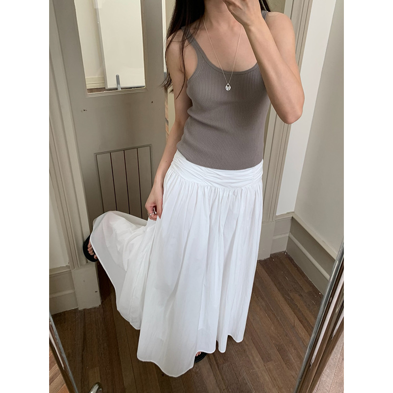 夏季新款褶皱设计A字半身裙法式大摆显瘦长裙