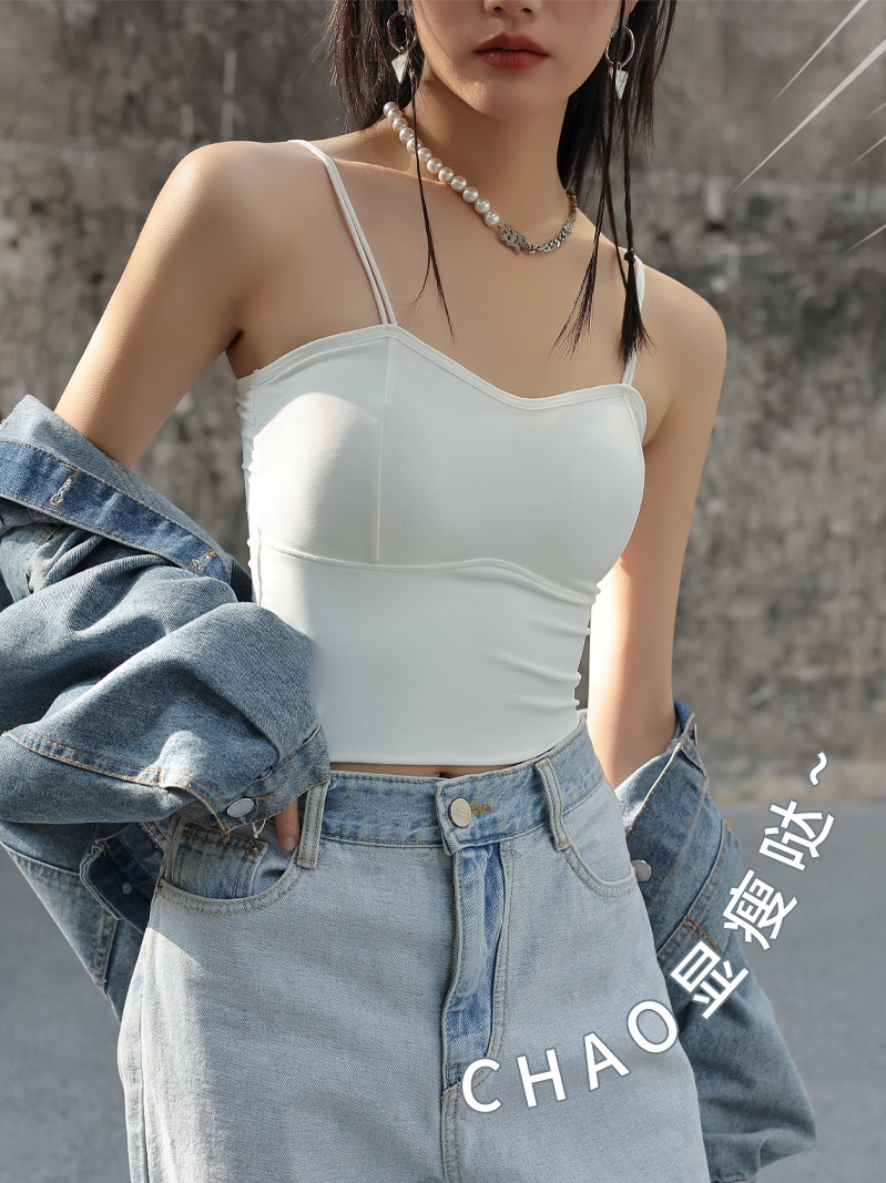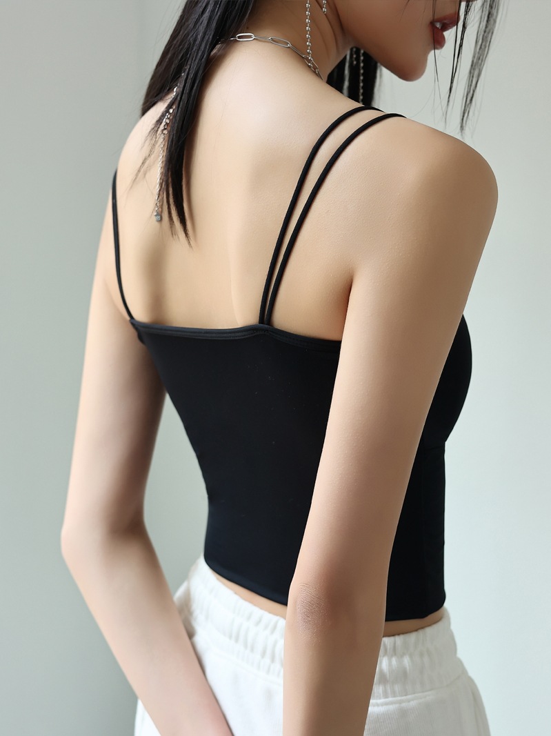夏季百搭双肩带冰丝带胸垫打底内搭小吊带黑色性感美背外穿背心潮