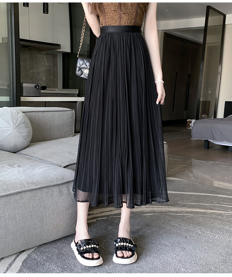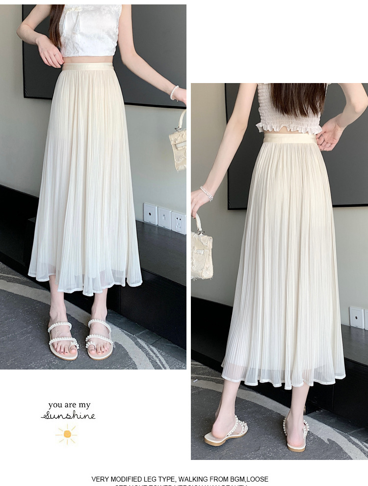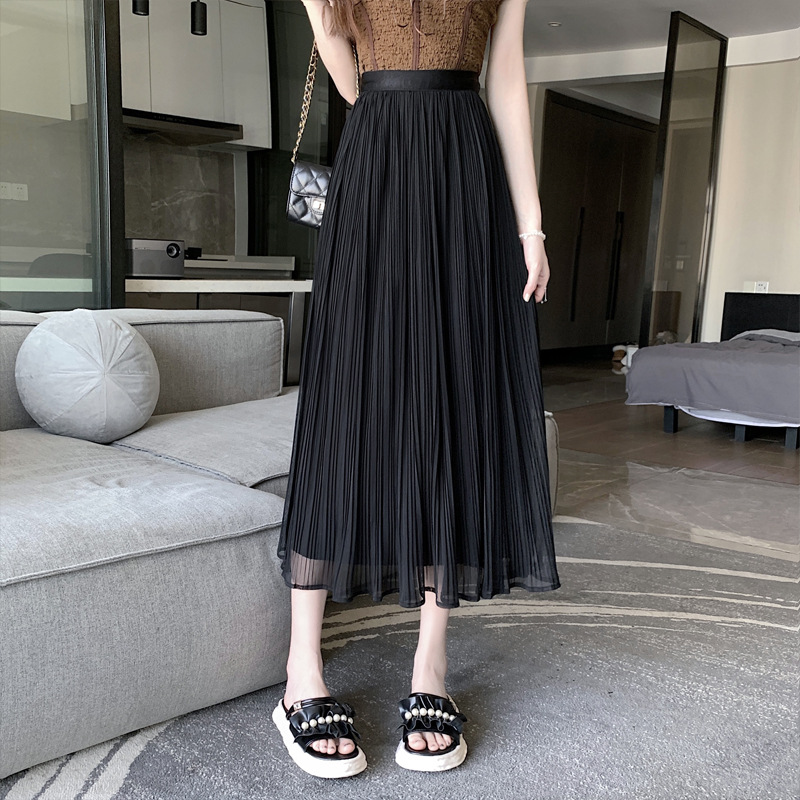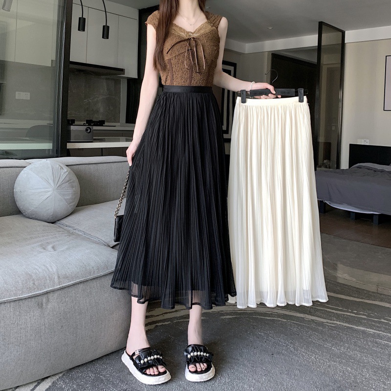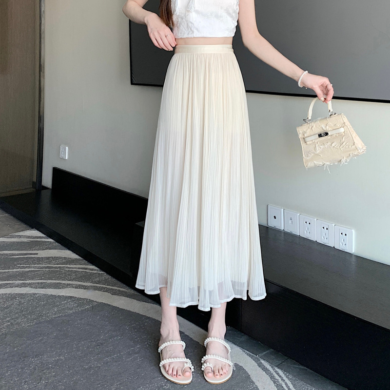 法式风琴褶百褶大摆裙雪纺半身裙女新款垂感显瘦A字裙中长款