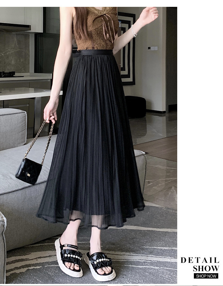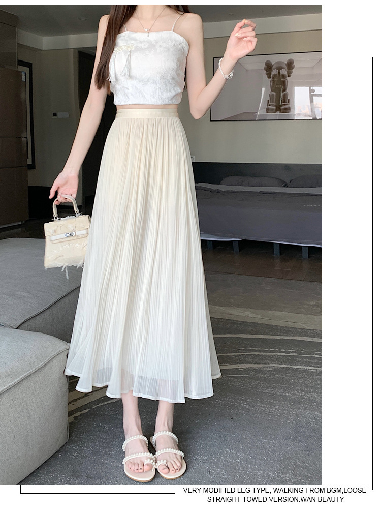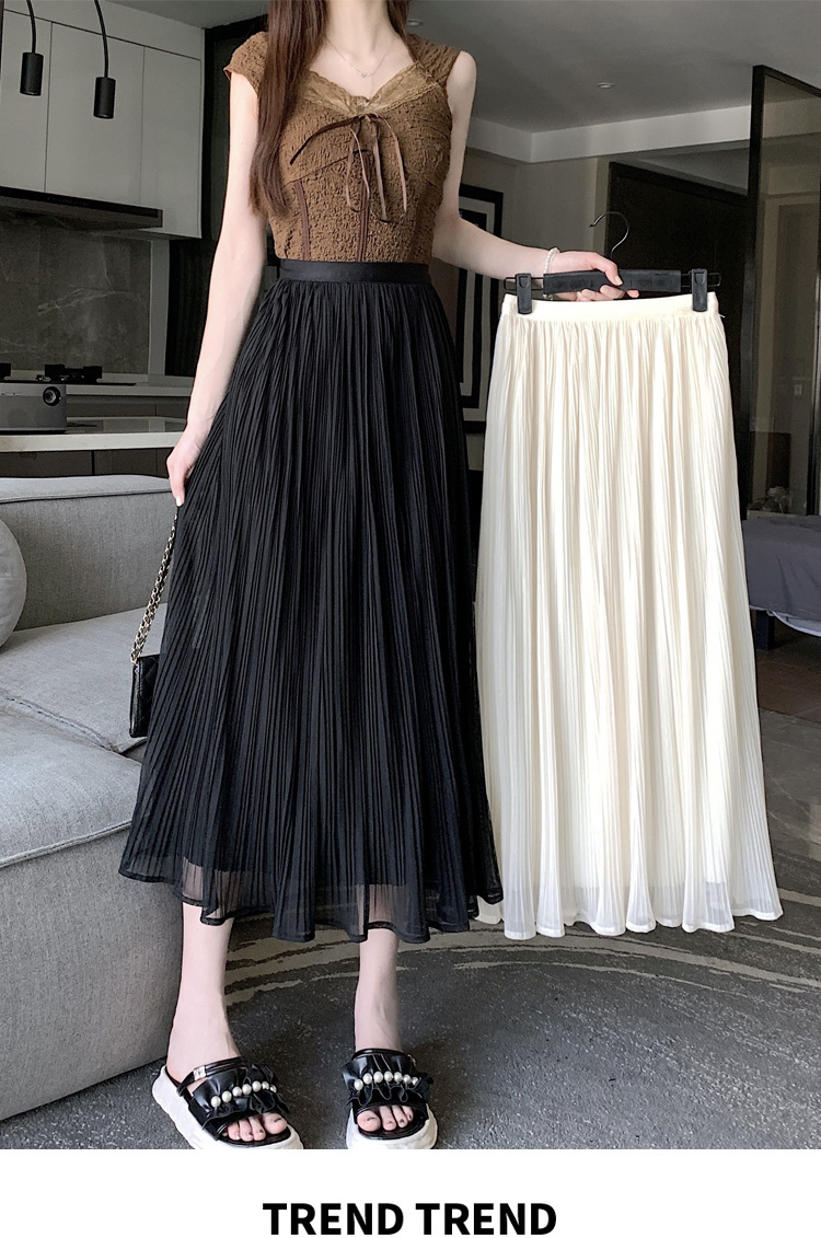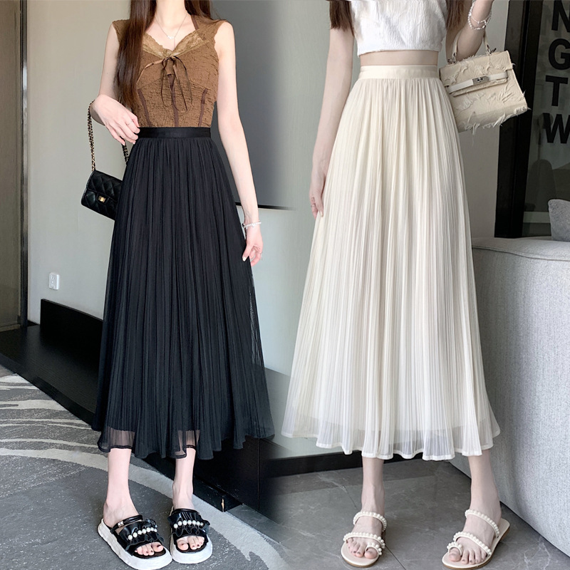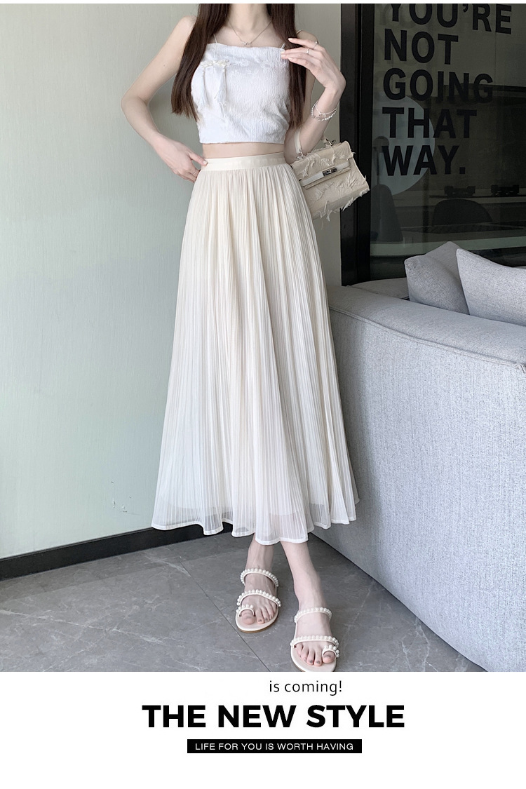 法式风琴褶百褶大摆裙雪纺半身裙女新款垂感显瘦A字裙中长款
