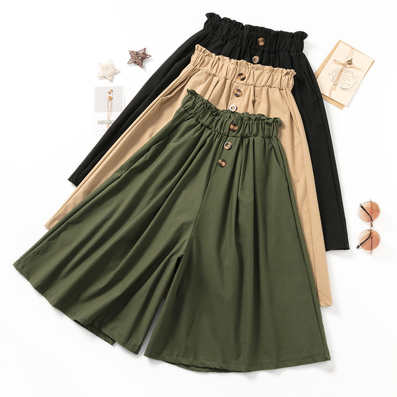 卡其色五分裤阔腿裤女小个子春夏款休闲中裤a字高腰半身裙裤