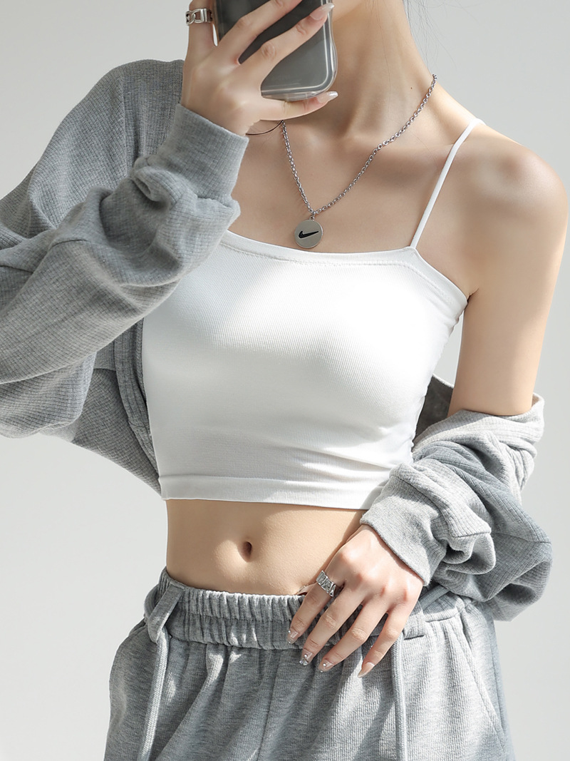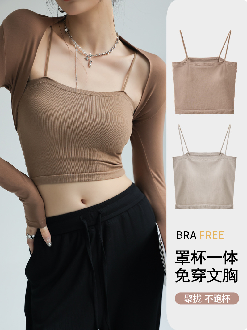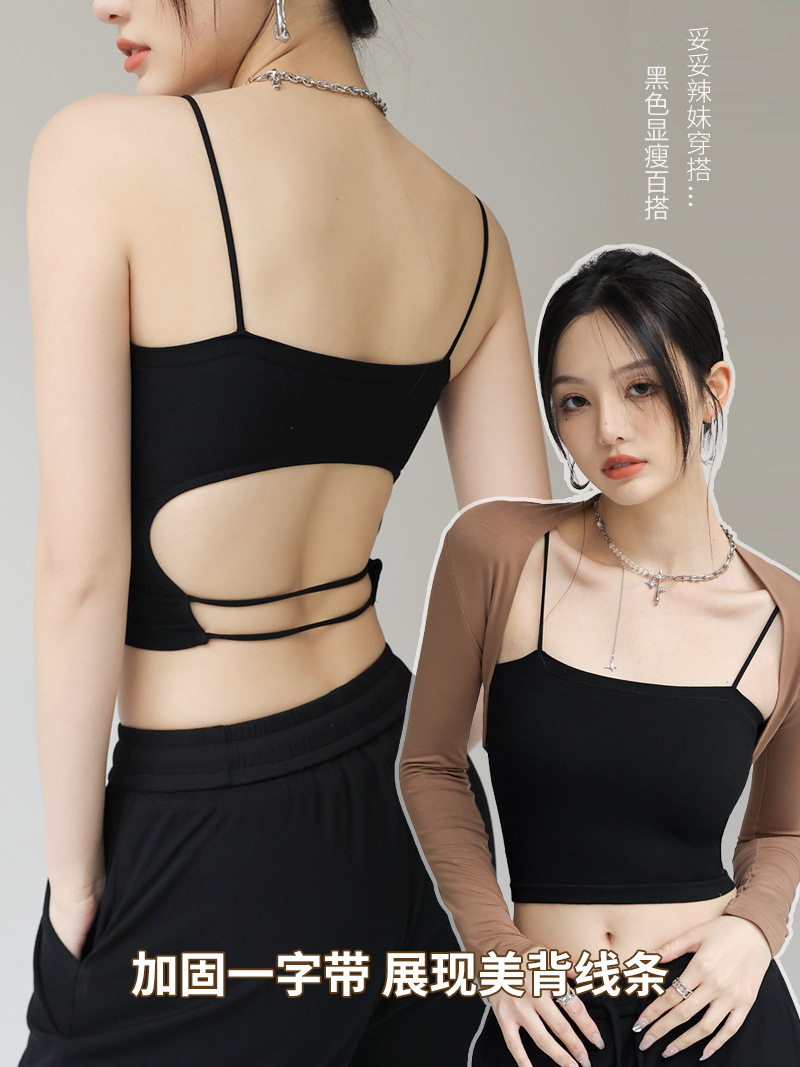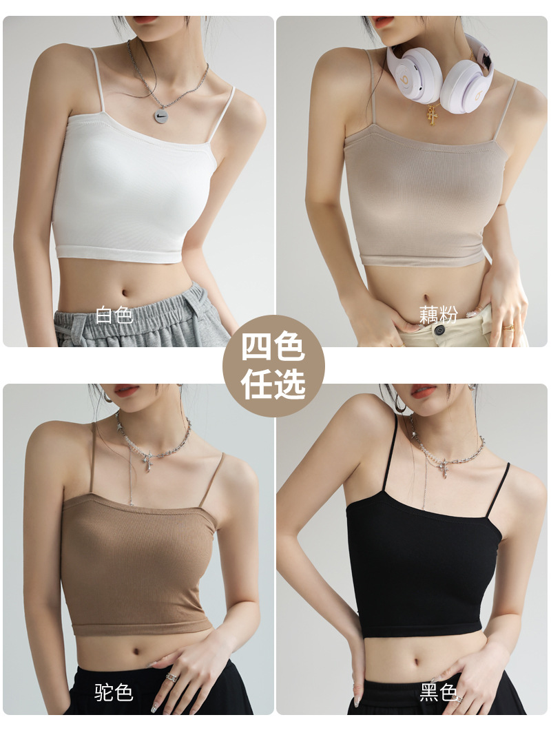 带胸垫莫代尔打底美背吊带女士内搭小背心夏季外穿一字肩抹胸上衣