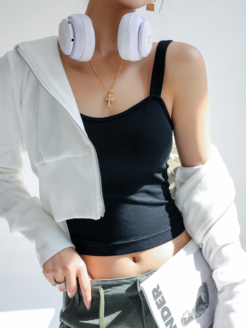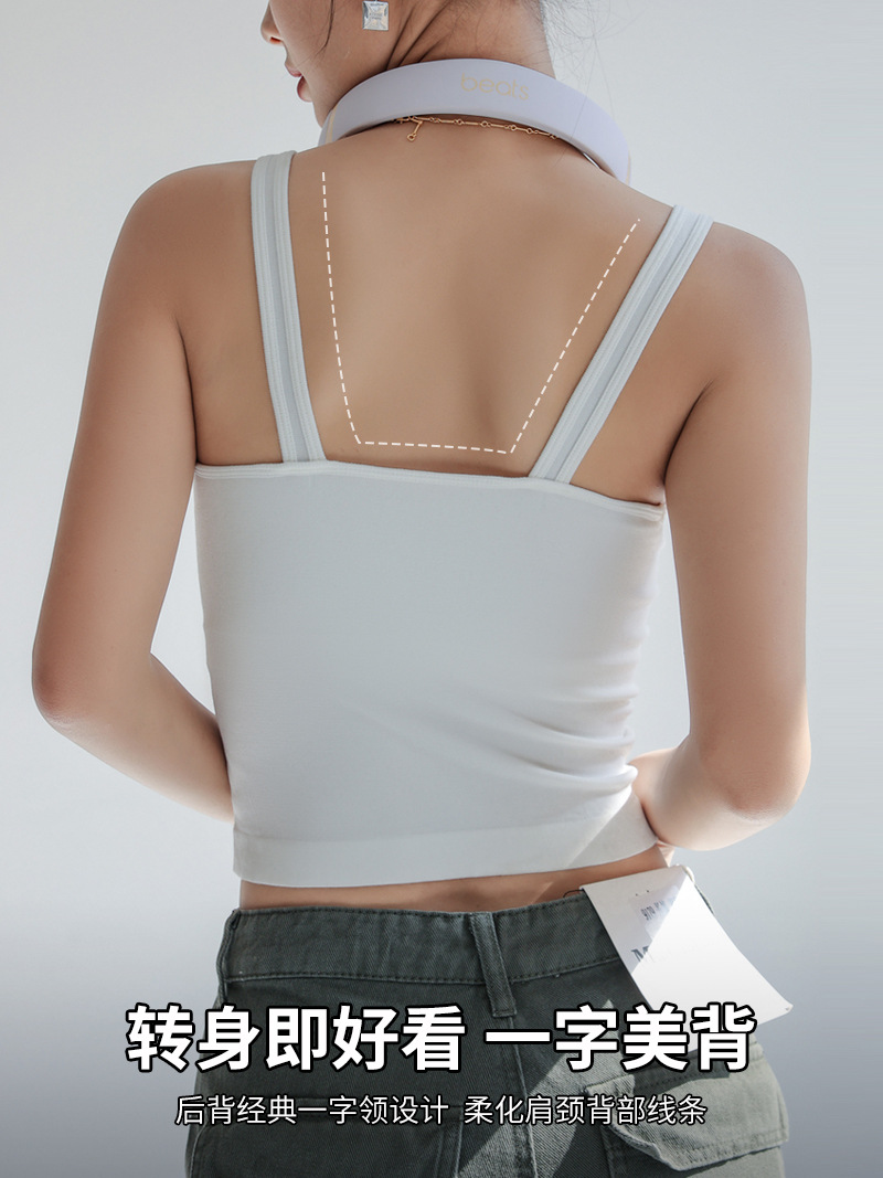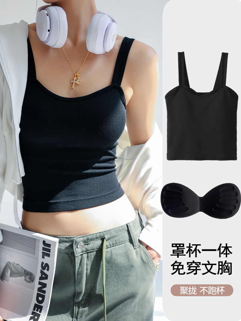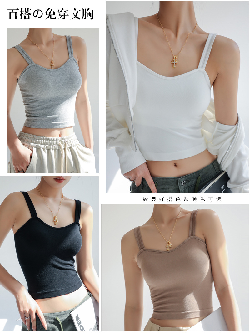莫代尔宽肩带带胸垫免穿文胸打底小吊带女士内搭针织美背背心外穿
