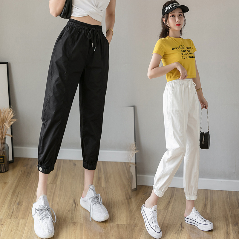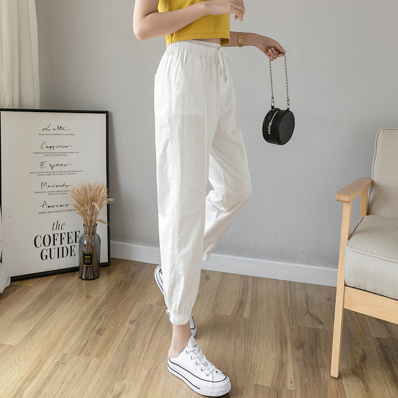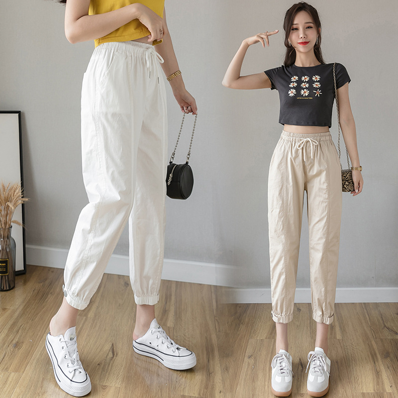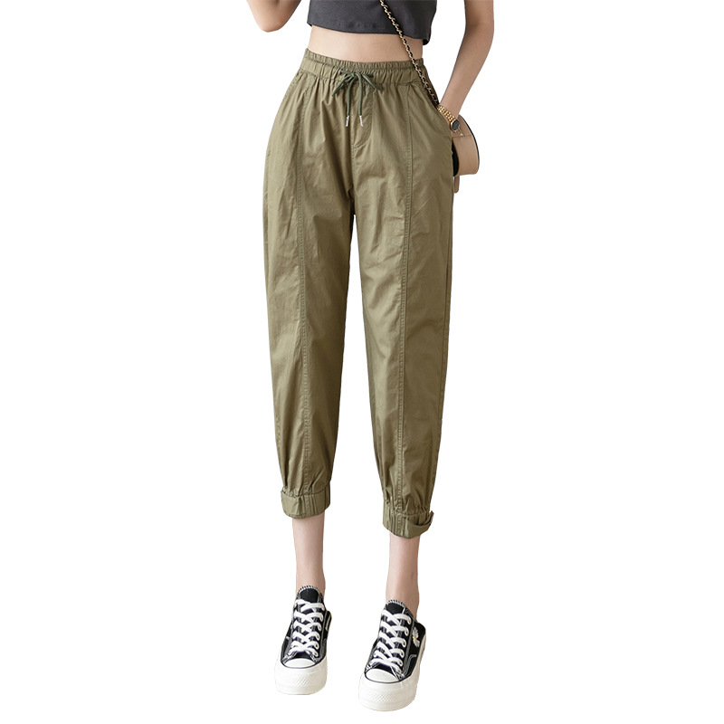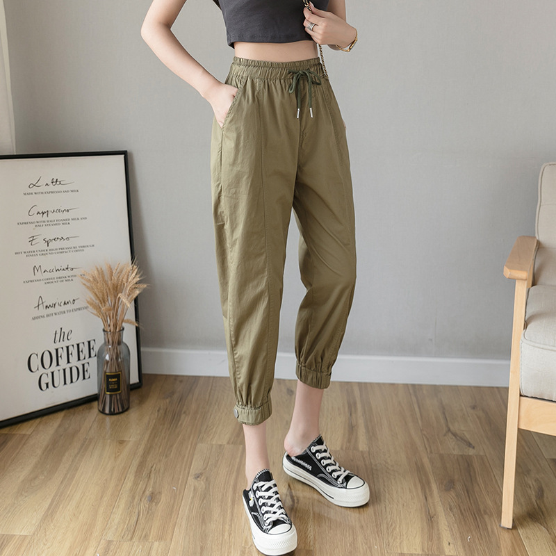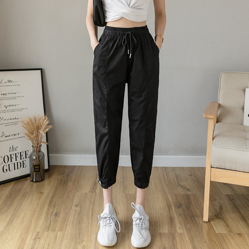 设计感束脚裤百搭九分裤休闲工装裤高腰小脚宽松直筒哈伦裤女新款