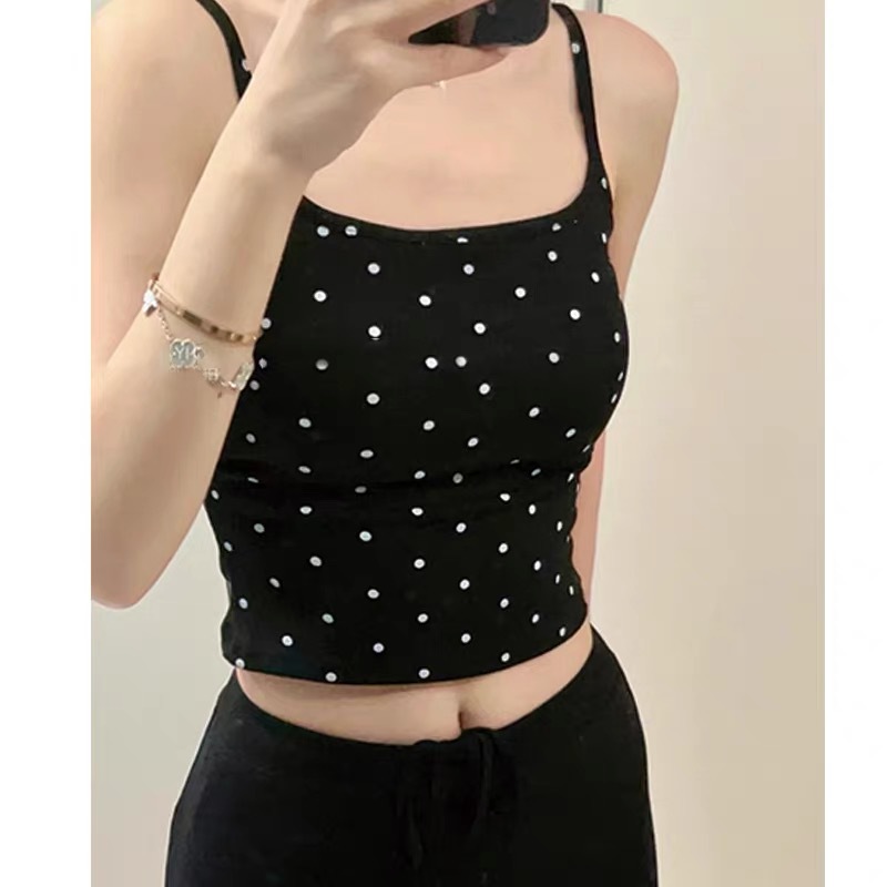 新款波点大U美背吊带内衣 一体式固定胸垫辣妹短款打底抹胸上衣