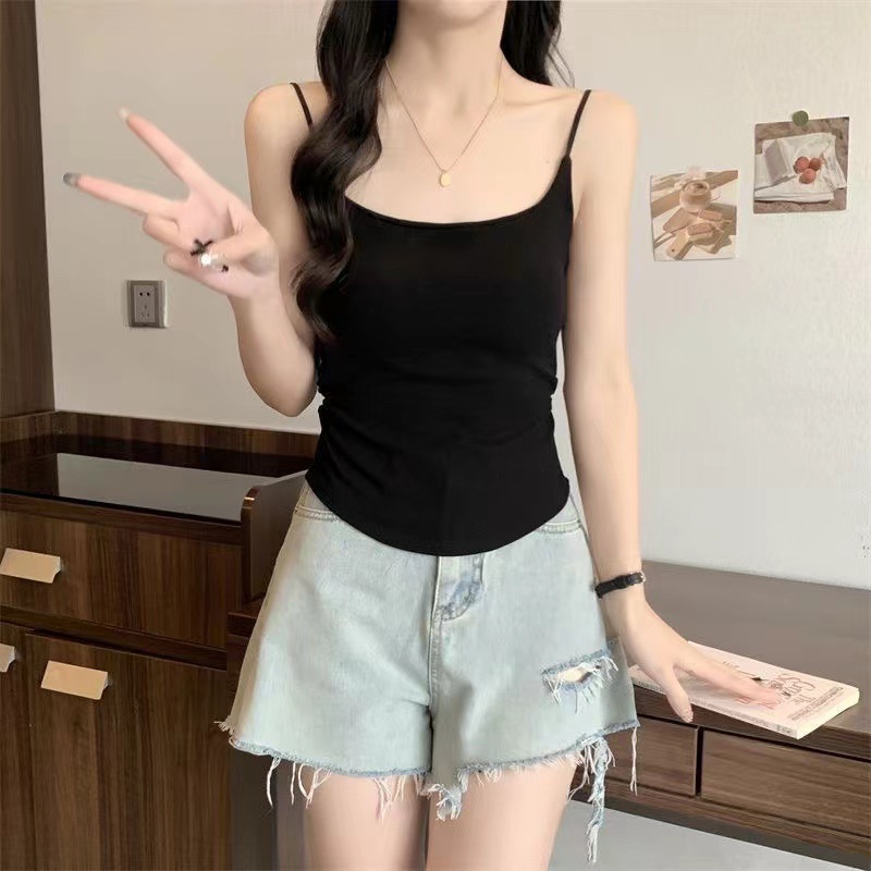 车缝棉纯欲甜辣褶皱吊带背心女 自带胸垫内搭外穿设计感修身上衣