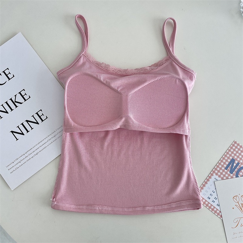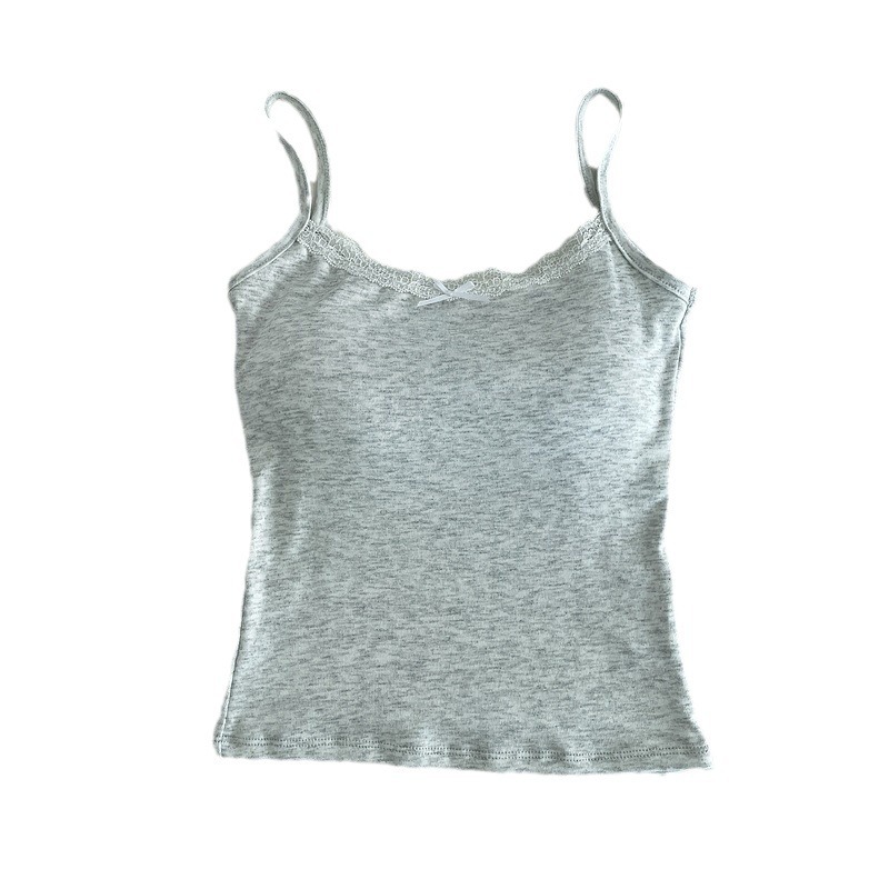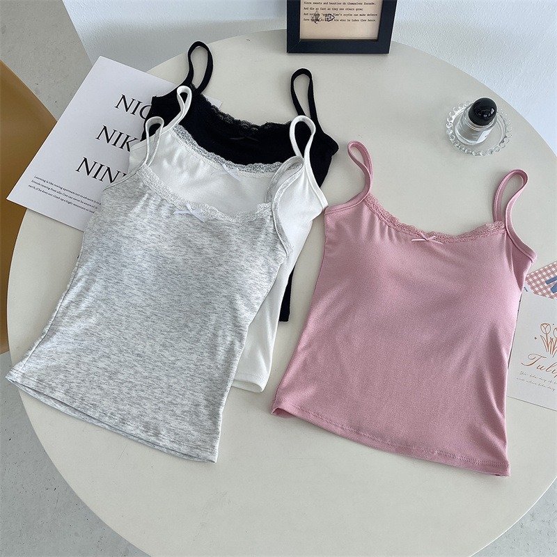 质量版纯欲修身蕾丝蝴蝶结一体式吊带舒适百搭打底纯色背心女