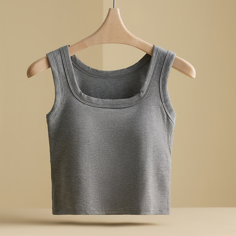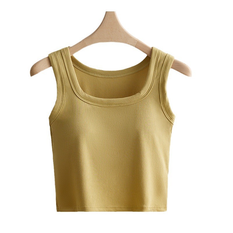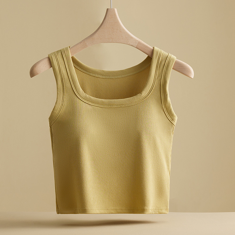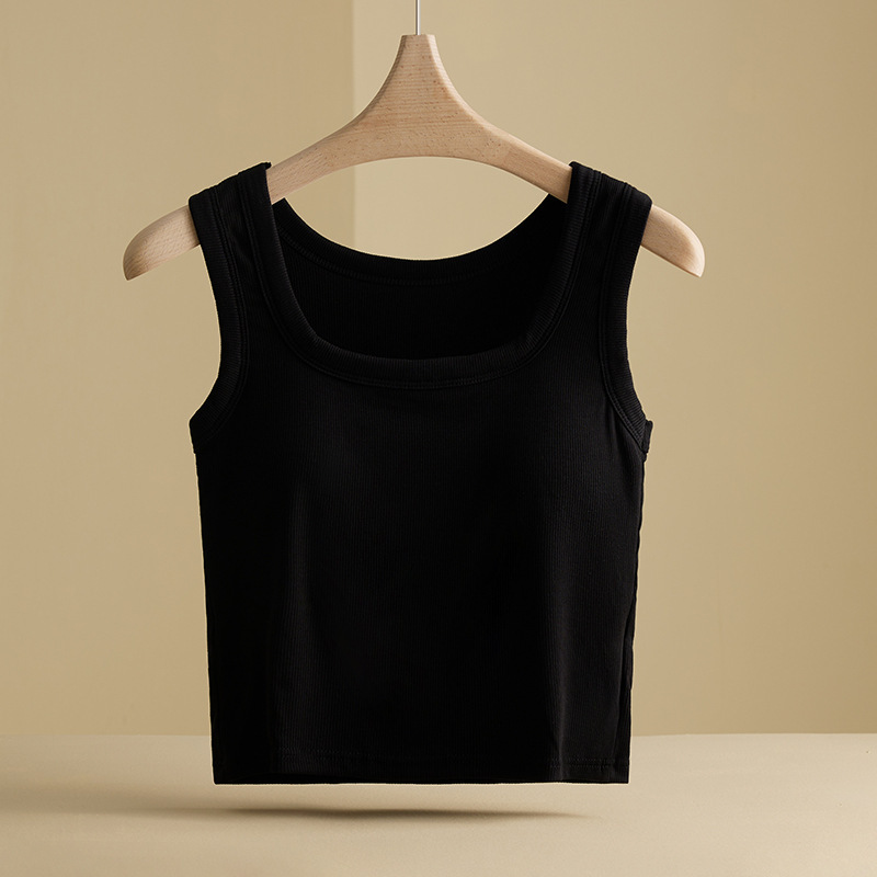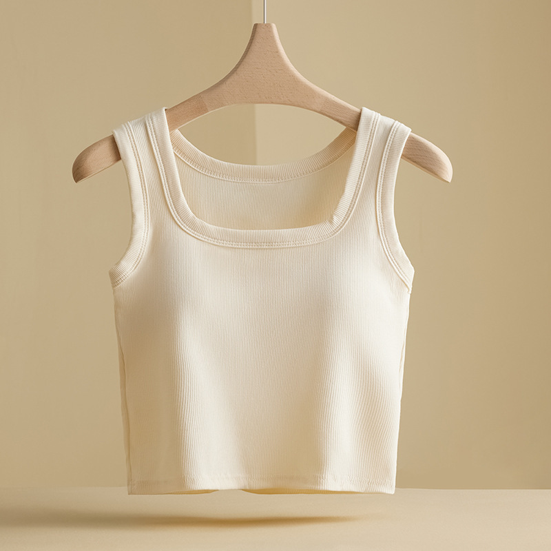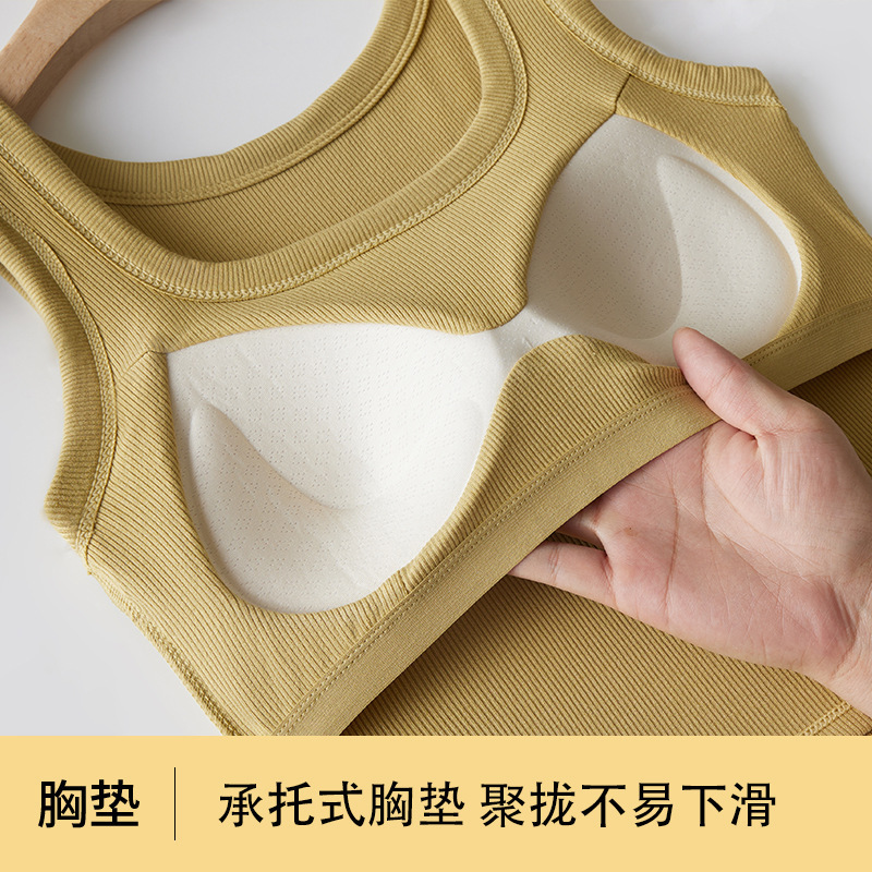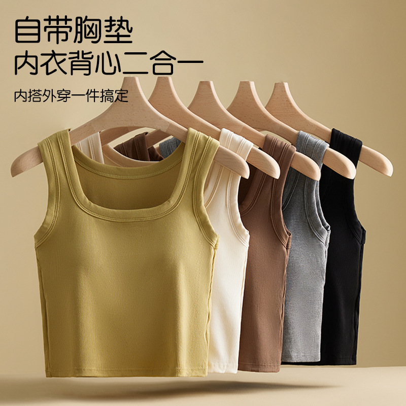宽肩方领带胸垫吊带背心女内搭修身打底外穿无袖美背一体杯上衣