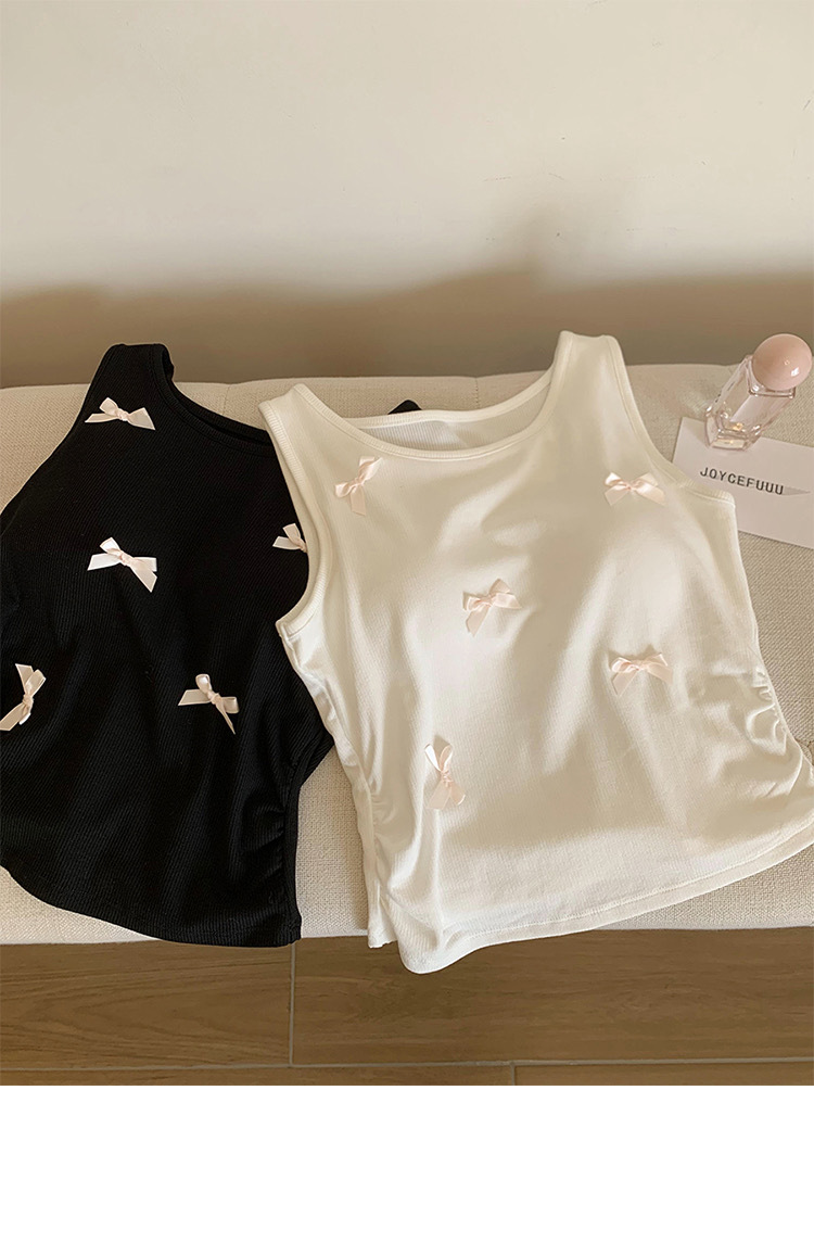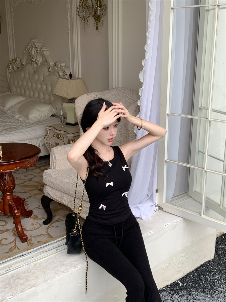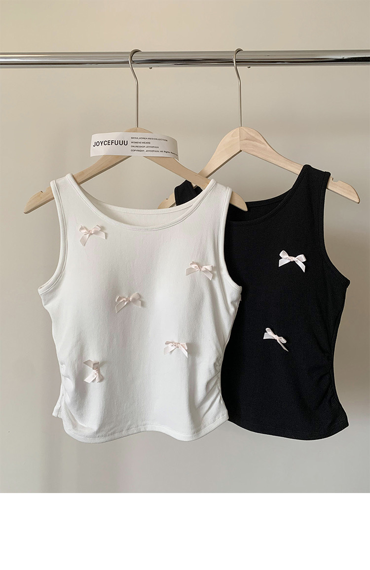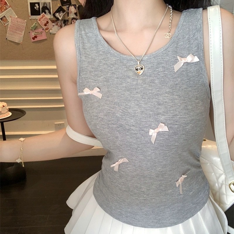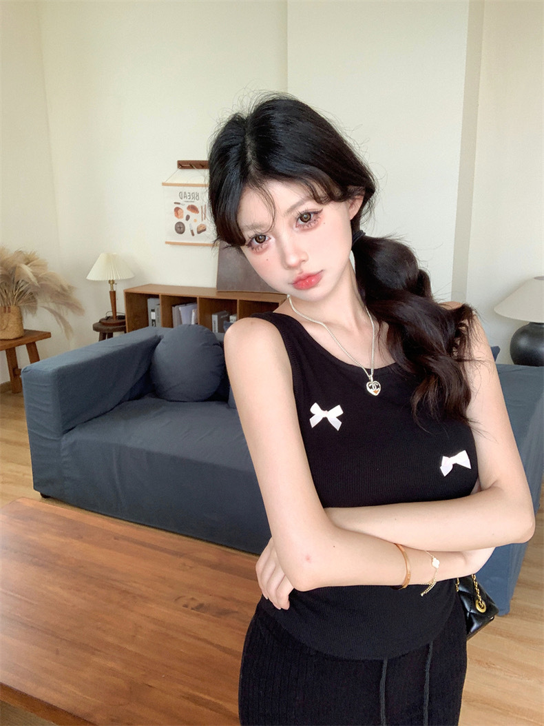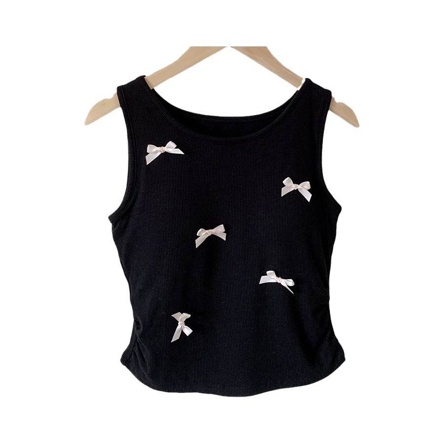 春夏新款宽肩背心女蝴蝶结设计修身打底内搭小背心女无袖坎肩