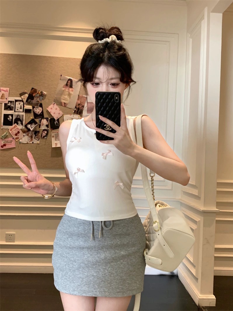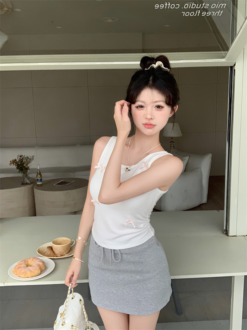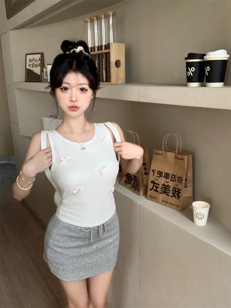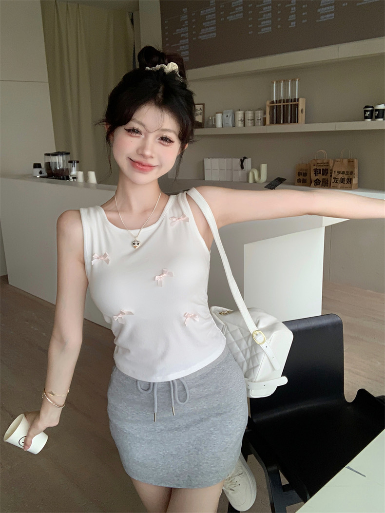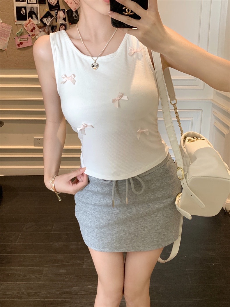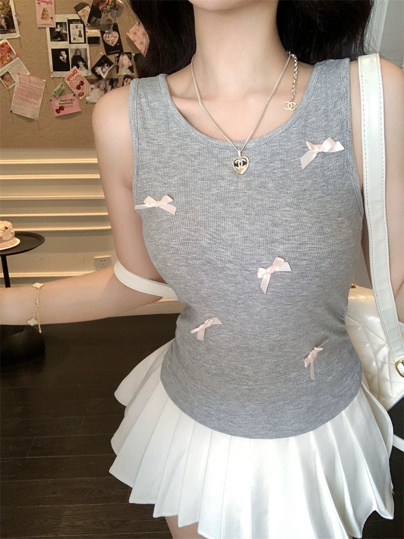 春夏新款宽肩背心女蝴蝶结设计修身打底内搭小背心女无袖坎肩
