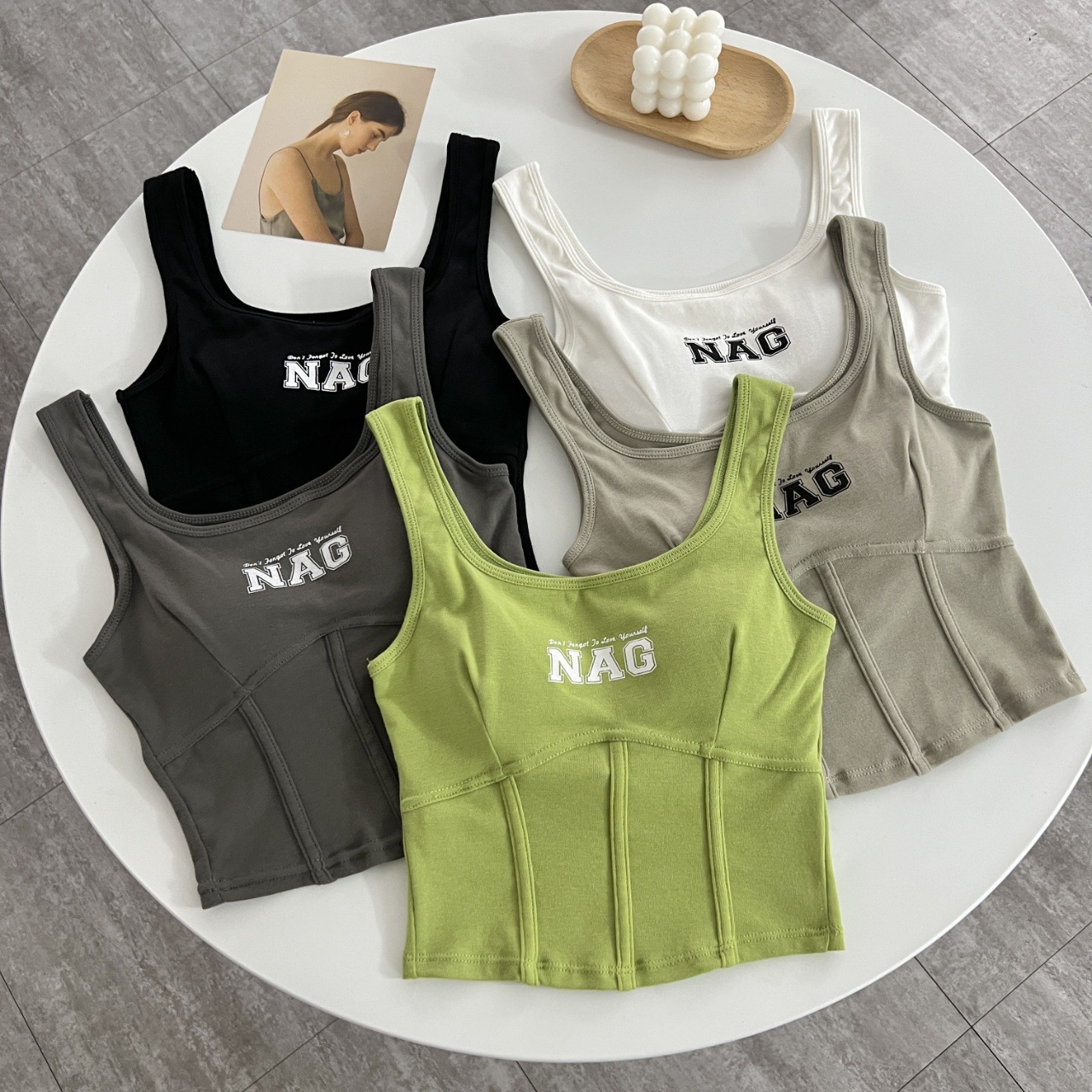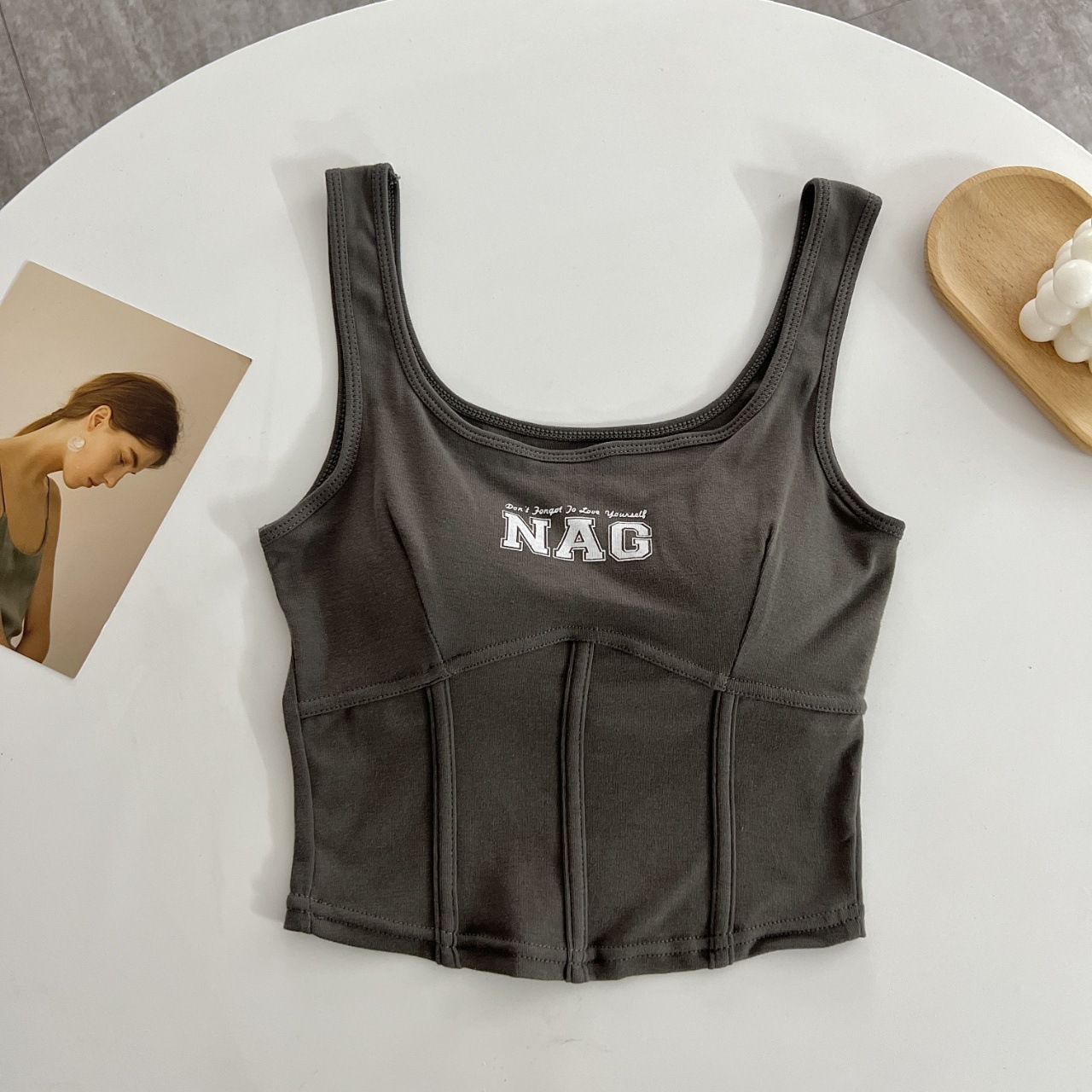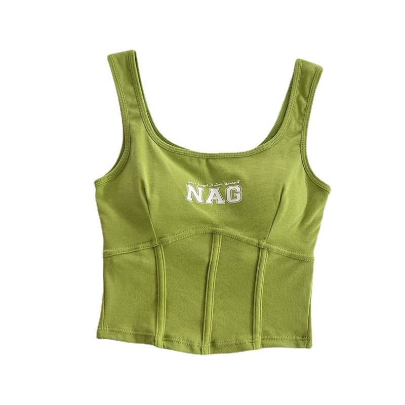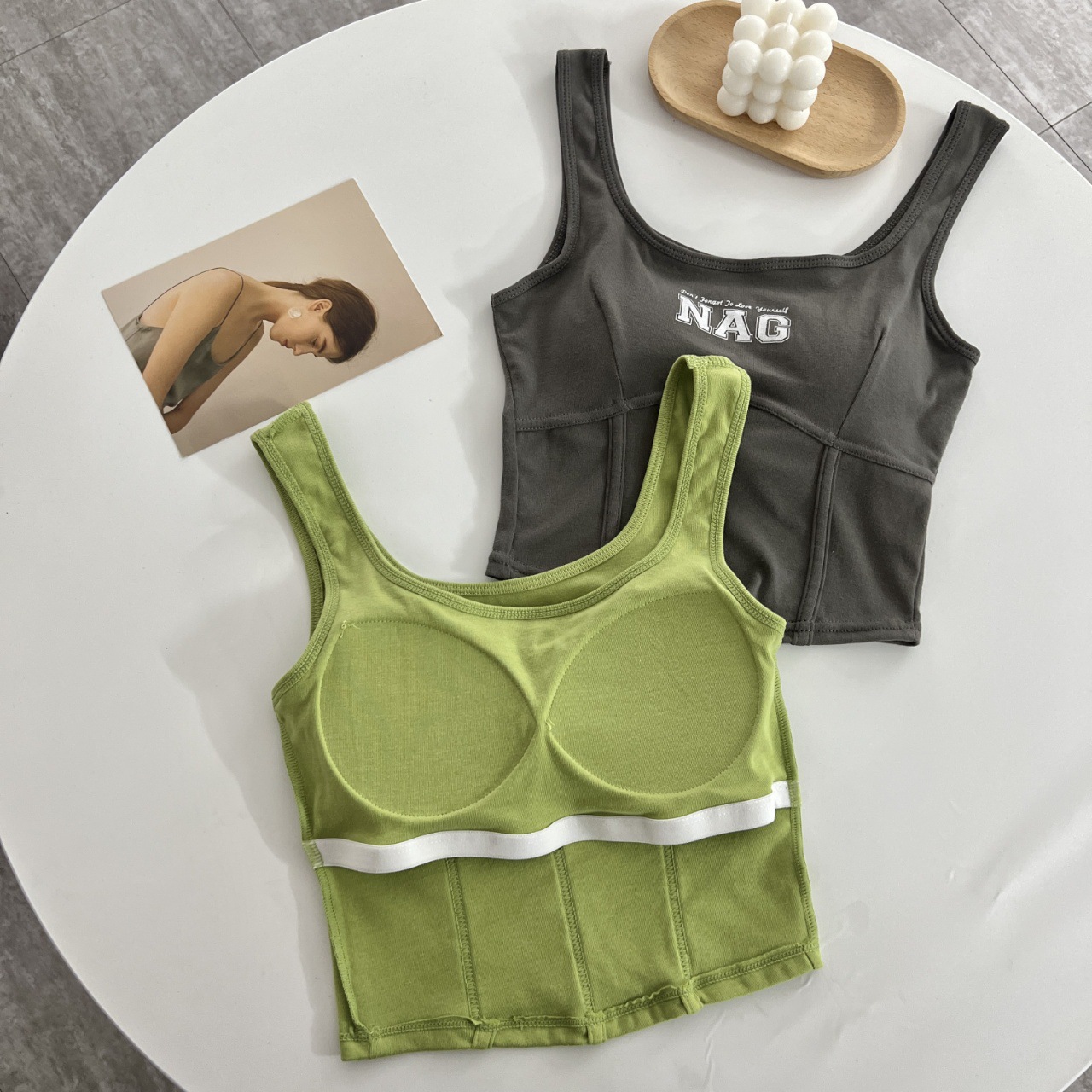夏季新款字母印花背心外穿鱼骨带胸垫内搭短款性感纯欲运动上衣