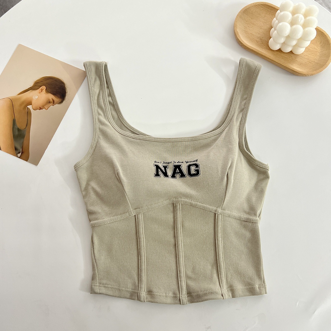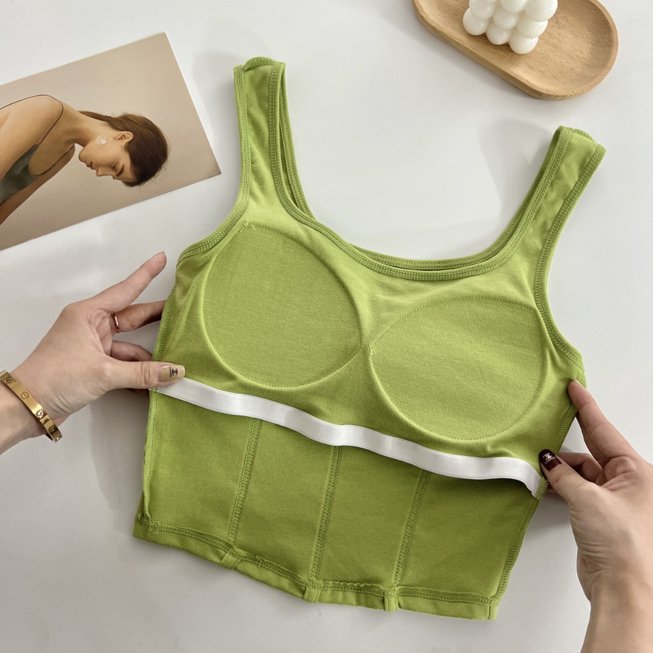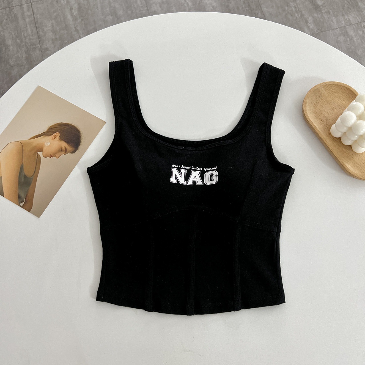 夏季新款字母印花背心外穿鱼骨带胸垫内搭短款性感纯欲运动上衣