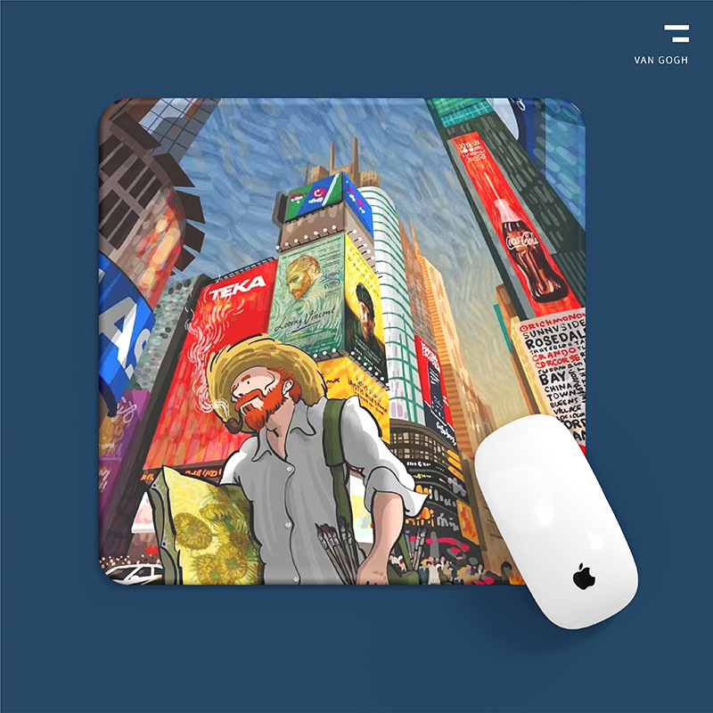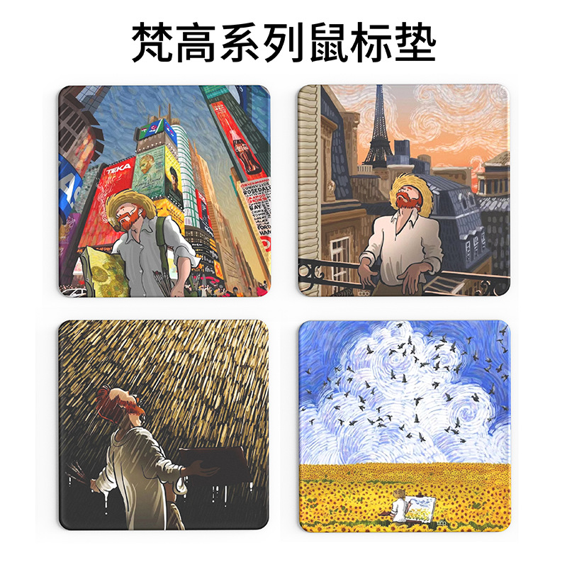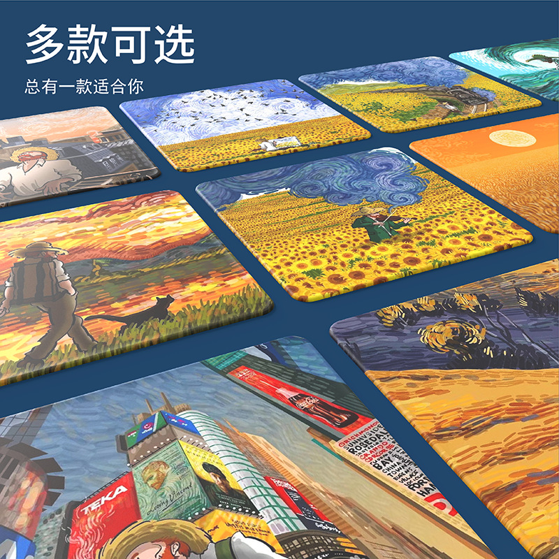 加厚硅胶办公桌创意鼠标垫男女生电脑个性梵高油画护腕鼠标垫