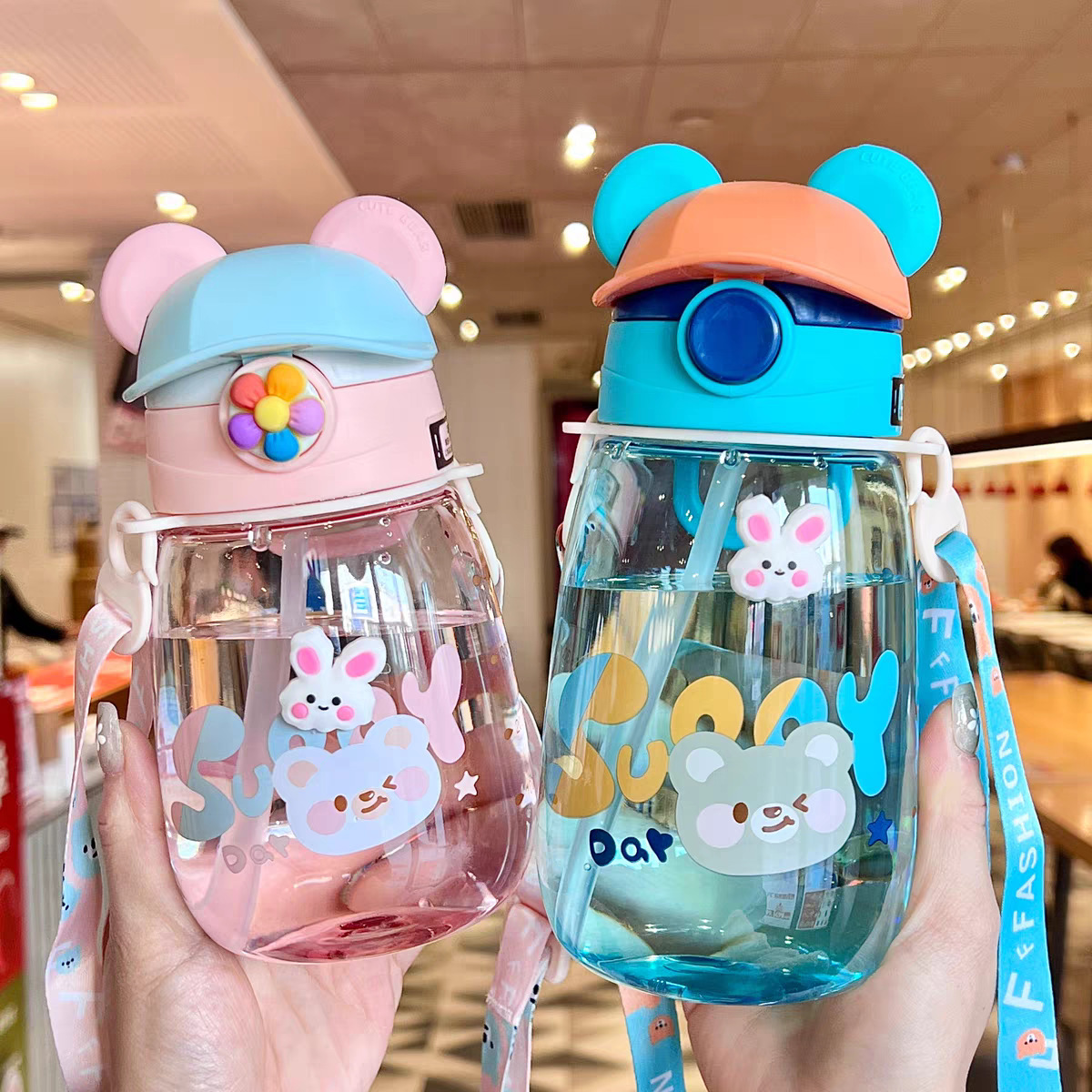儿童水杯可爱幼儿园带吸管杯夏季小学生上学水壶塑料杯子