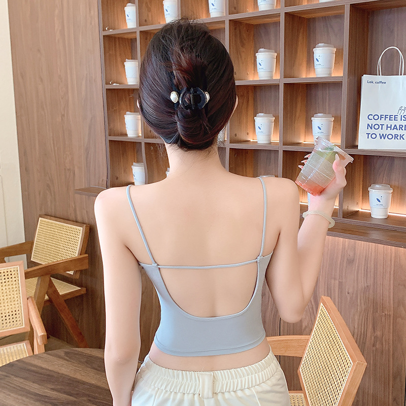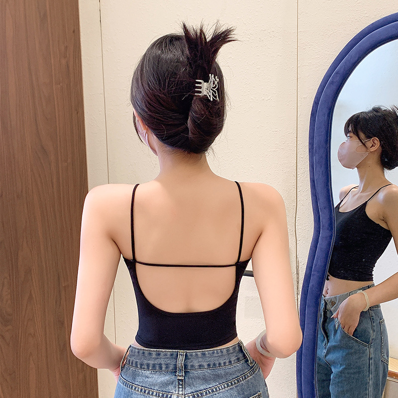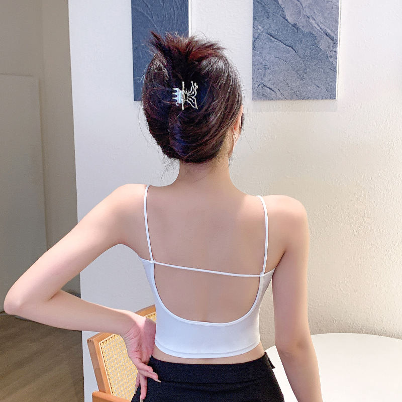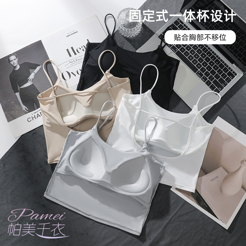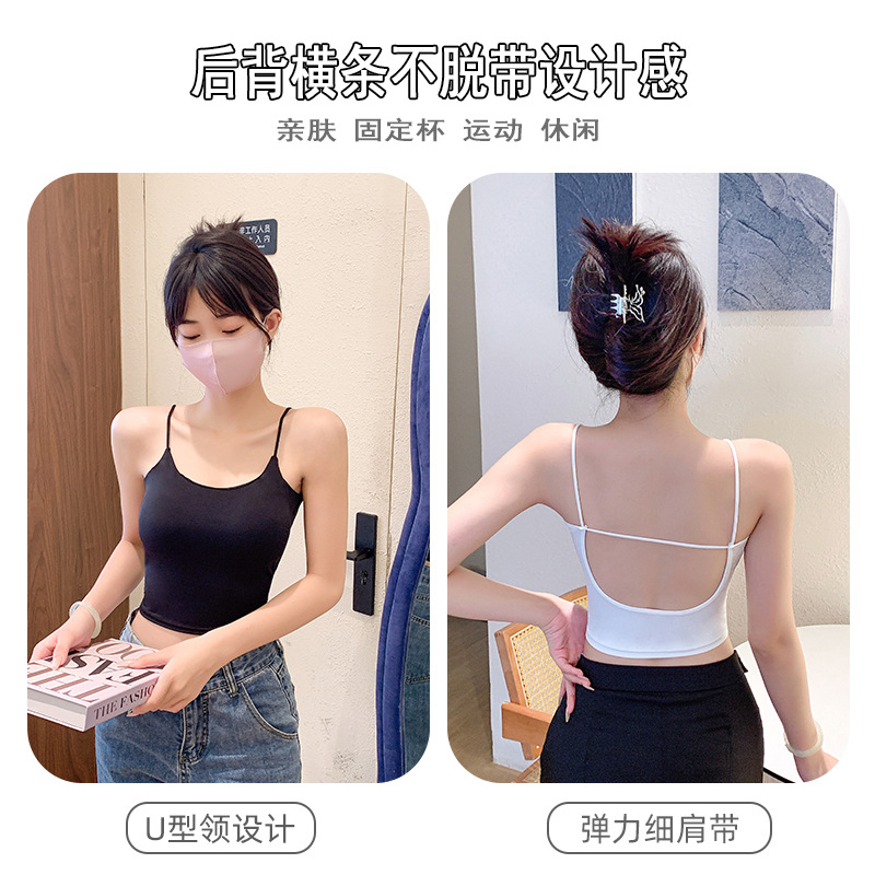 新款夏季冰丝吊带背心辣妹内搭带胸垫运动美背内衣女外穿短款抹胸