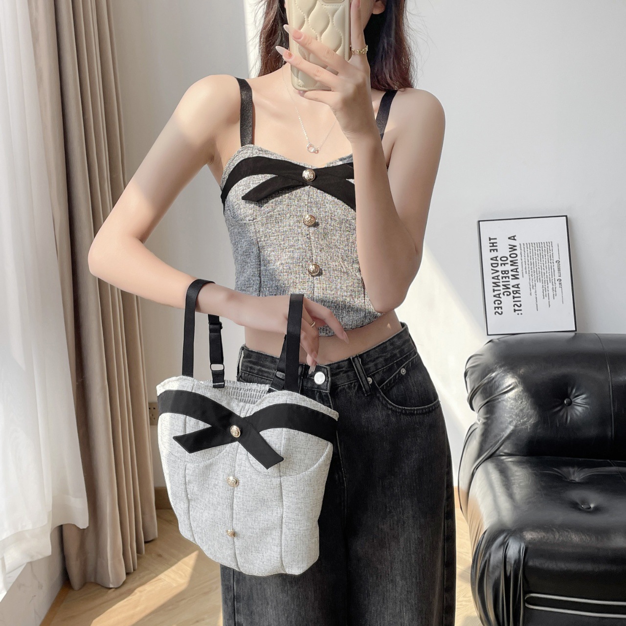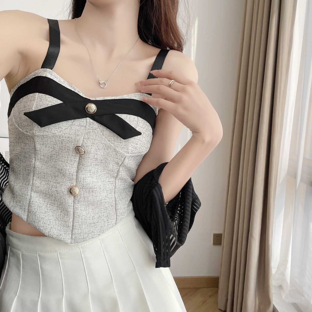 小香风蝴蝶结气质外穿美背抹胸女甜辣妹打底修身带胸垫吊带小背心
