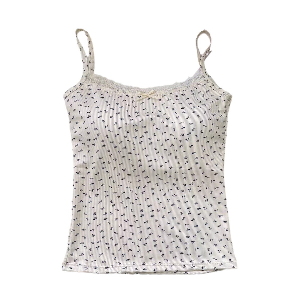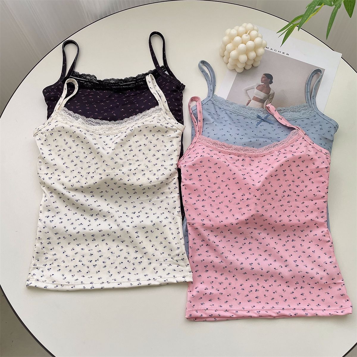 纯欲蕾丝花边吊带背心女带胸垫夏季打底内搭修身短款碎花上衣薄款