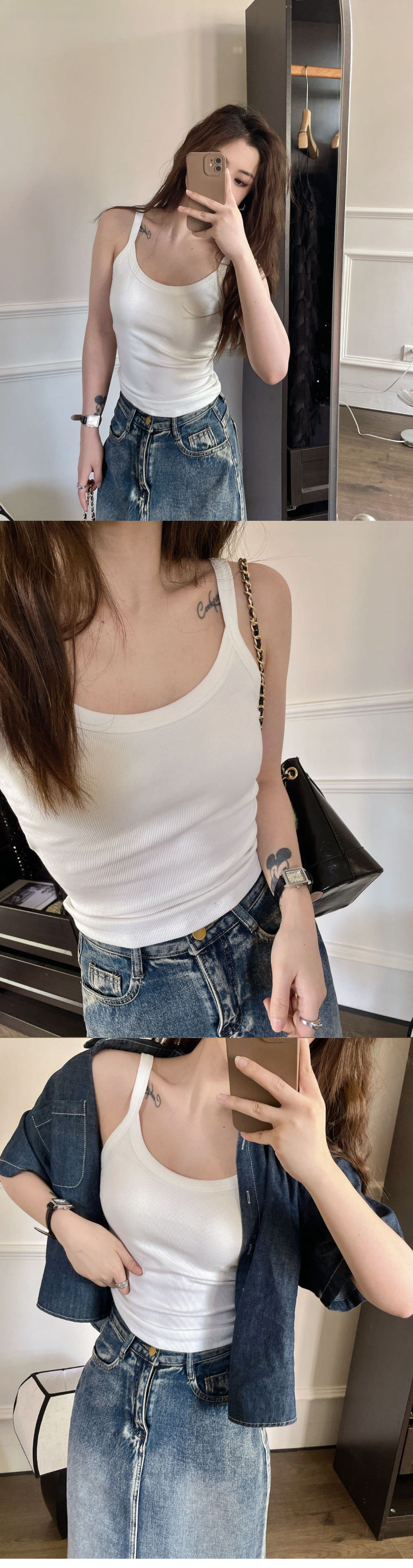 时尚带胸垫吊带背心内衣女螺纹棉舒适透气百搭修身显瘦打底上衣女