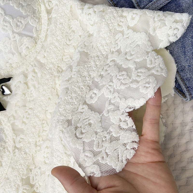 设计感蝴蝶结短袖牛仔衬衫女夏季大码胖mm显瘦别致绝美短款小上衣