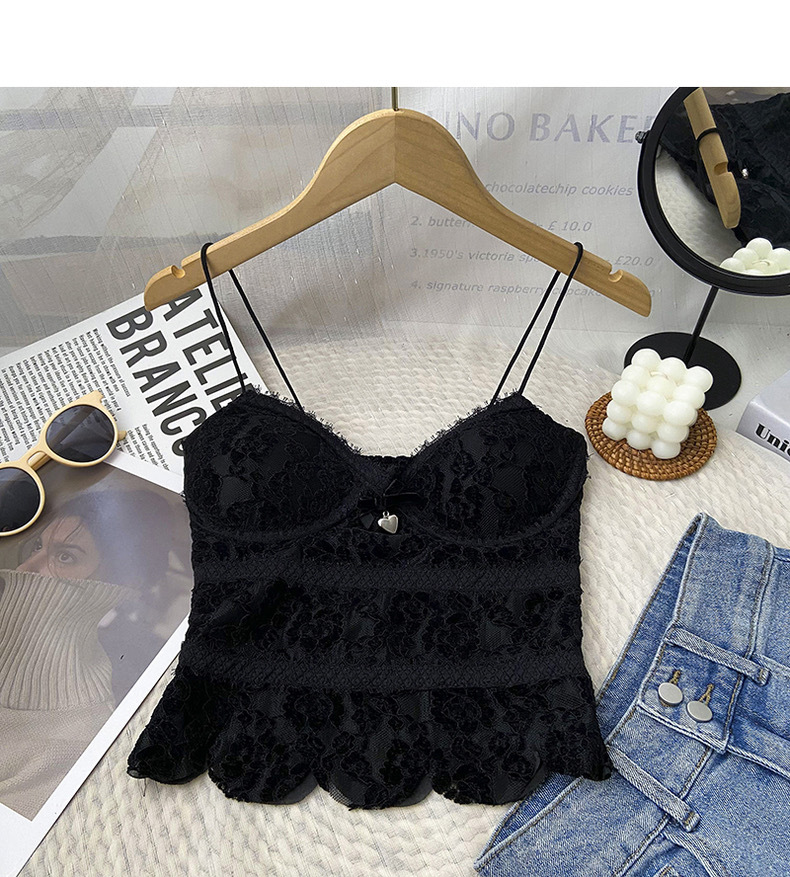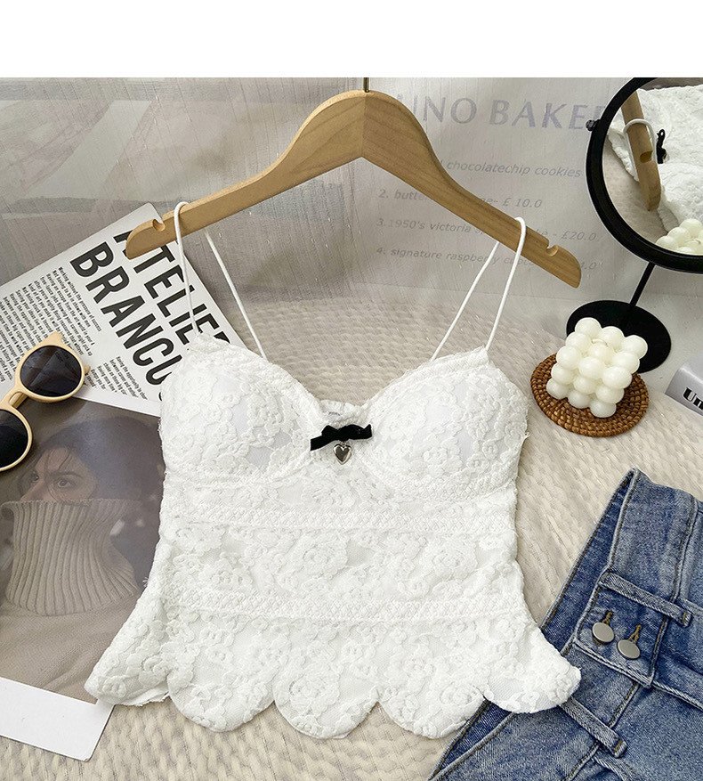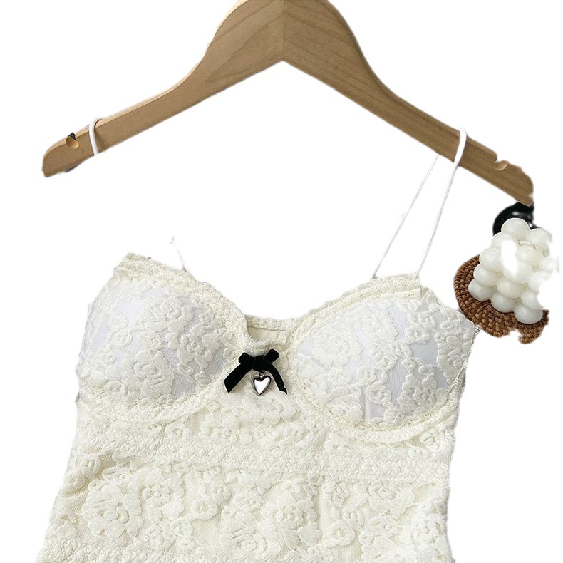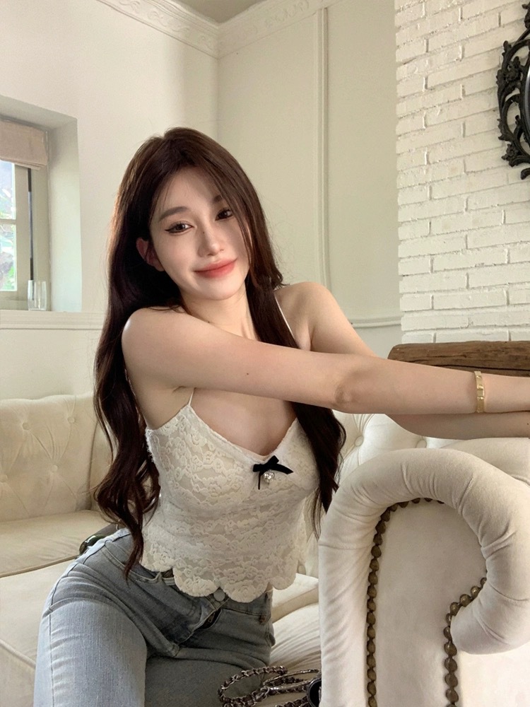 甜辣妹蝴蝶结蕾丝吊带小背心自带胸垫性感内搭显瘦短款上衣女外穿