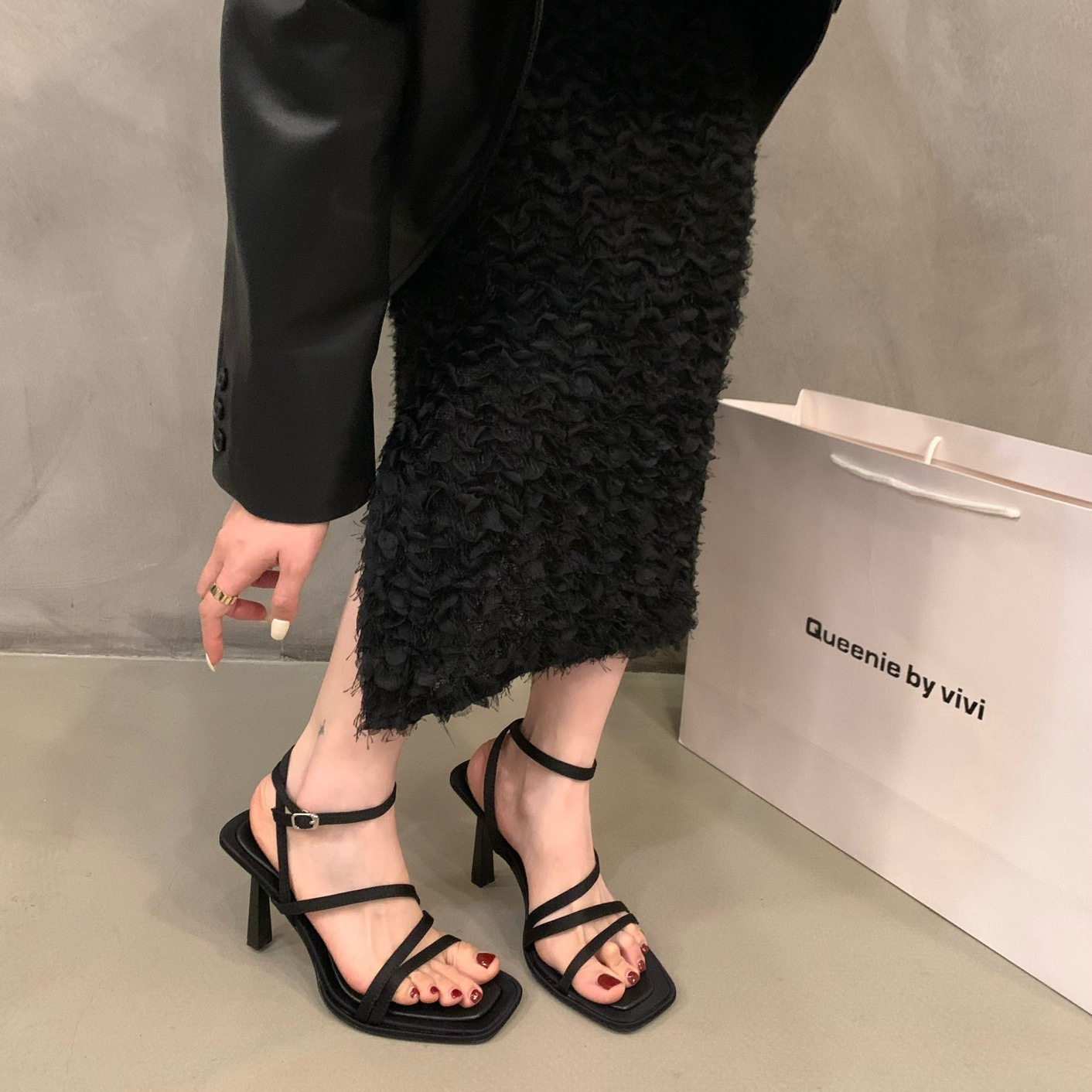法式一字带凉鞋仙女鞋子新款夏季小众高级感罗马绑带高跟鞋