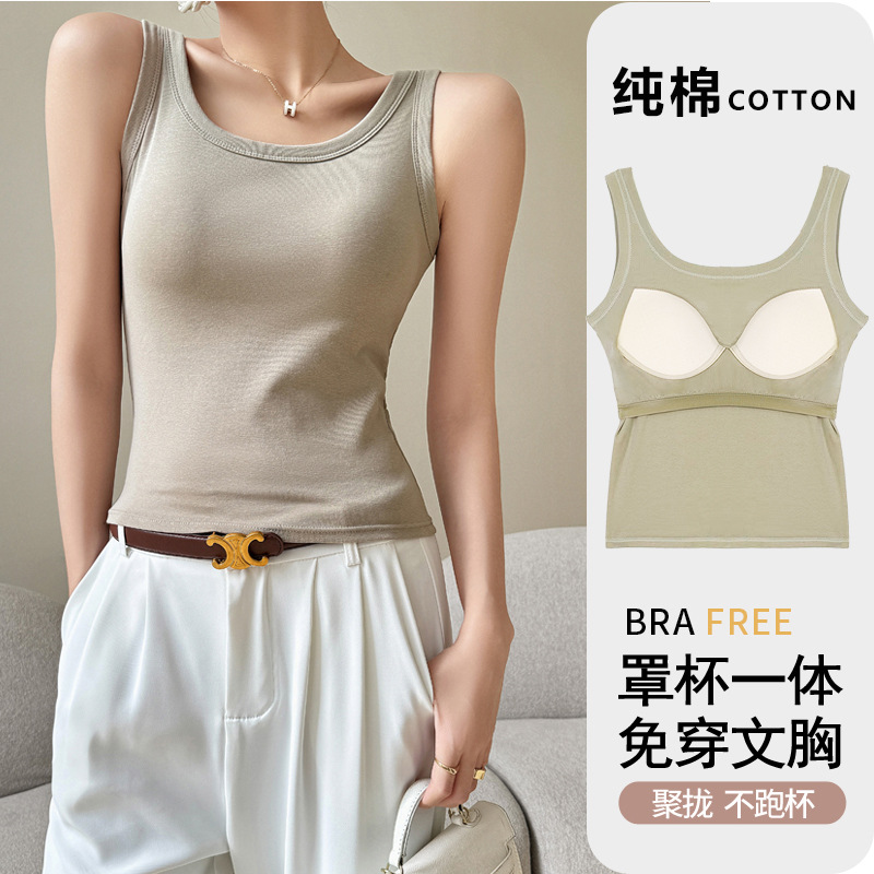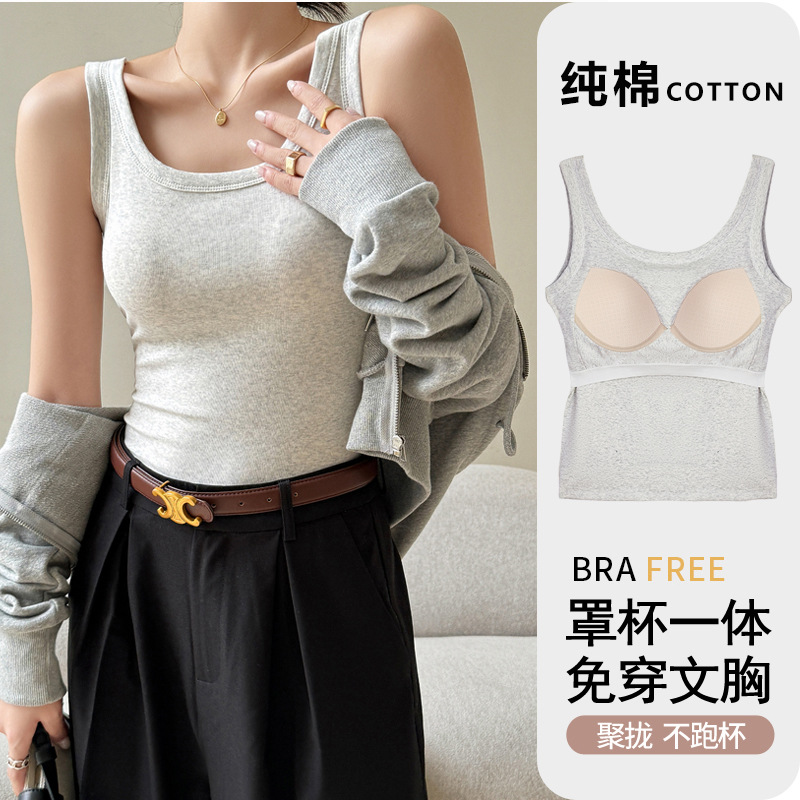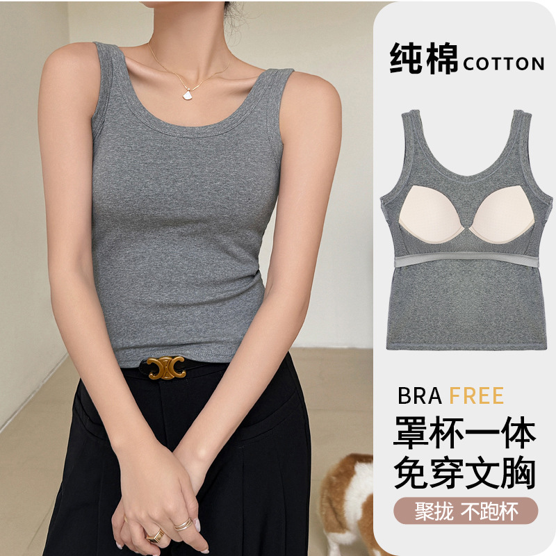 纯棉U型美打底背吊带小背心女士内搭带胸垫一体外穿针织辣妹上衣