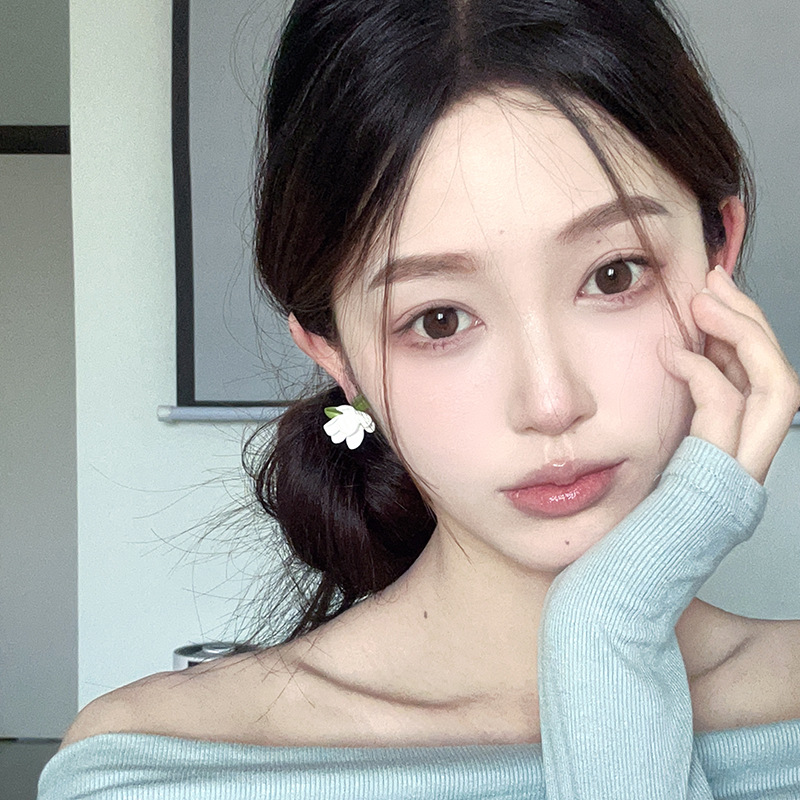 小清新栀子花珍珠耳环小众设计感耳钉新款高级感百搭耳饰潮