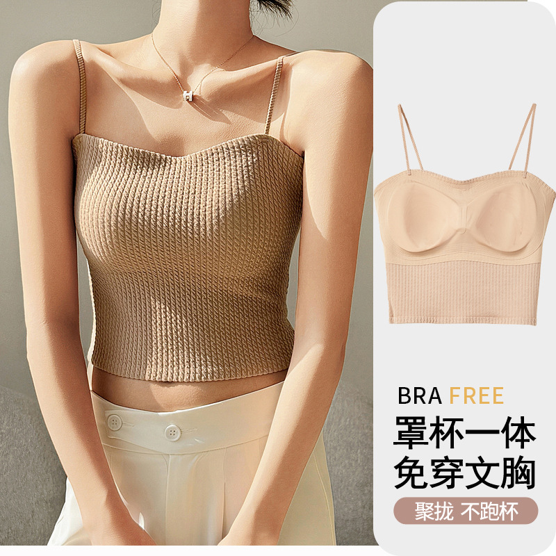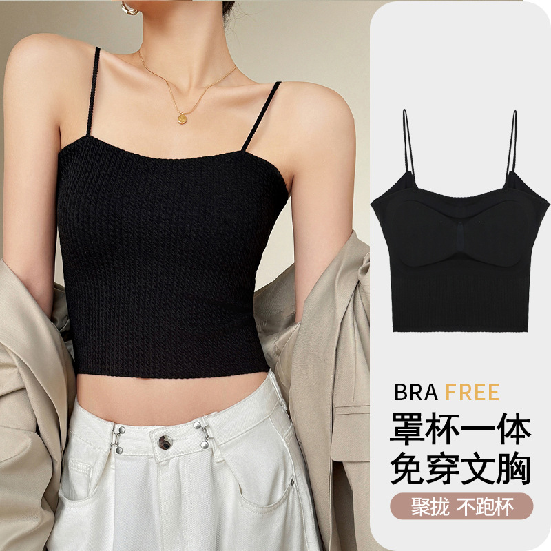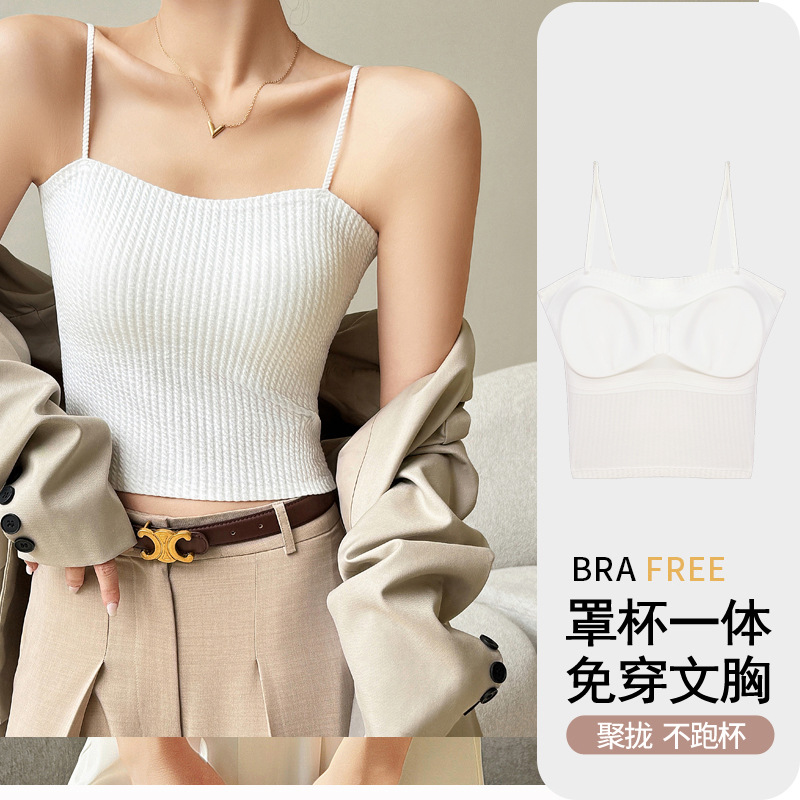 夏季吊带带胸垫一体杯女西装内搭打底无痕小背心外穿美背裹胸抹胸