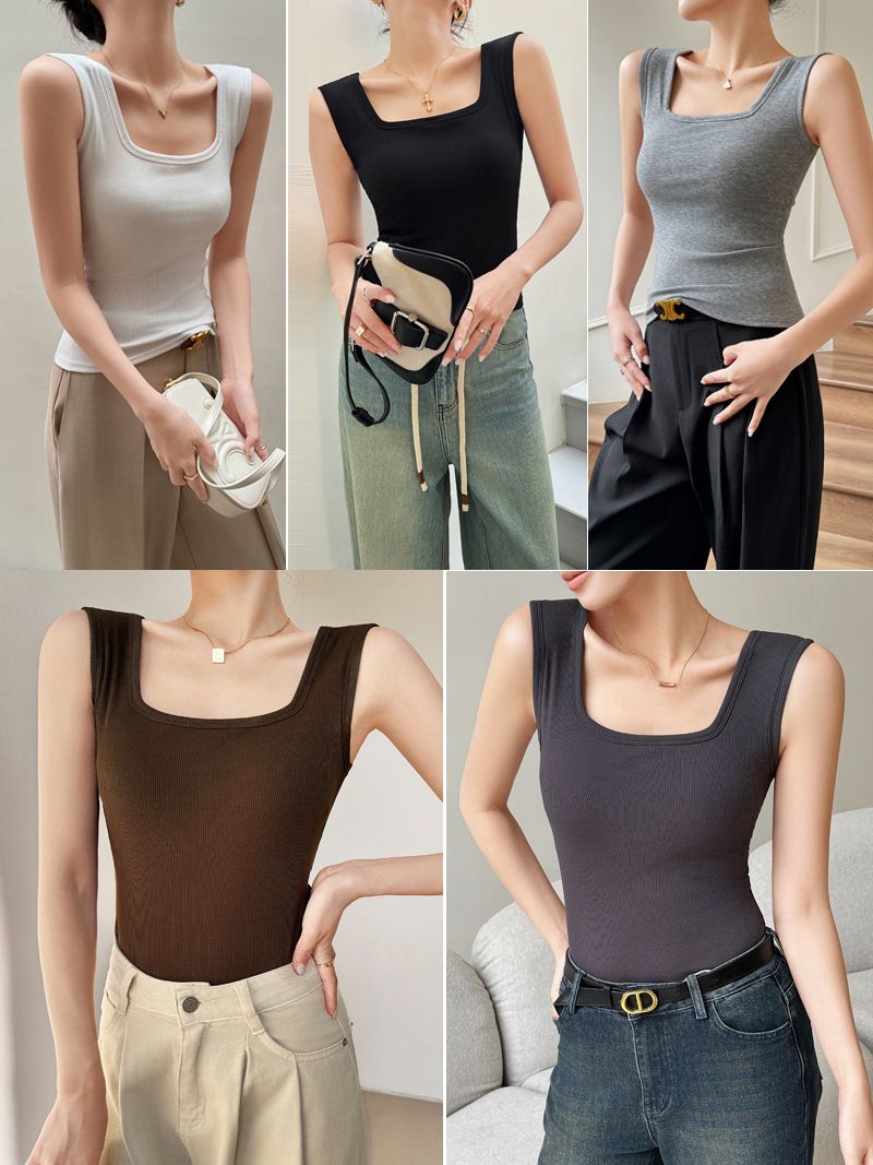 夏季白色带胸垫一体杯打底小背心女西装内搭春秋吊带螺纹针织外穿