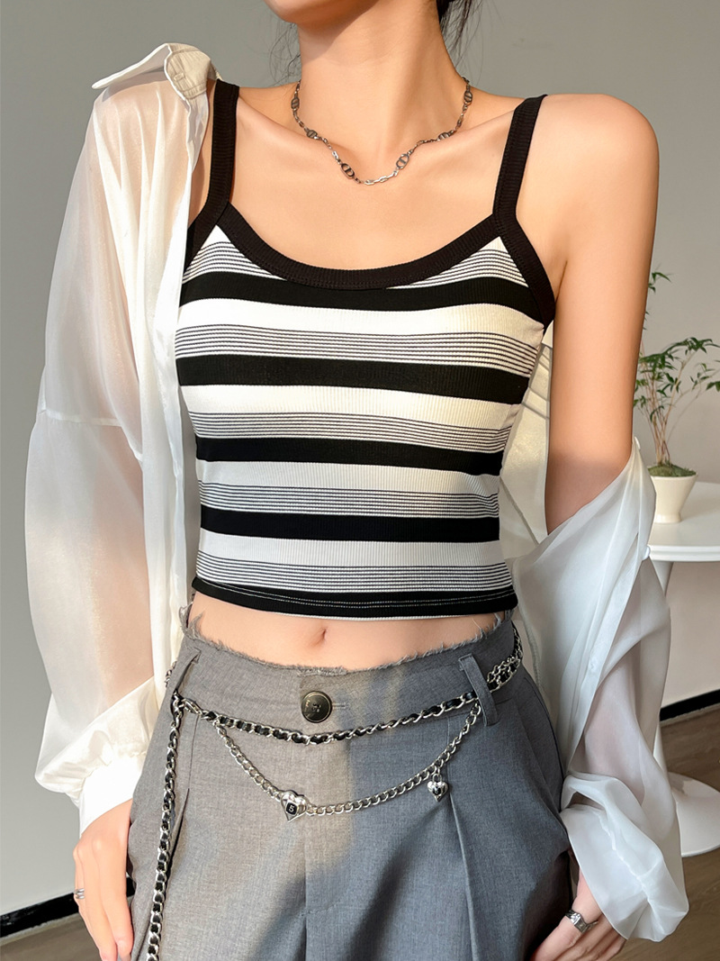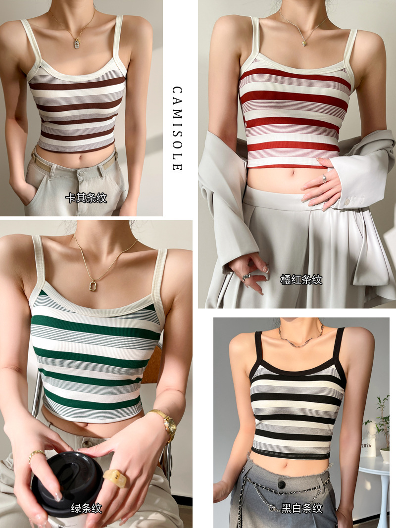 莫代尔条纹带胸垫打底小吊带背心女士内搭春夏季性感修身辣妹上衣