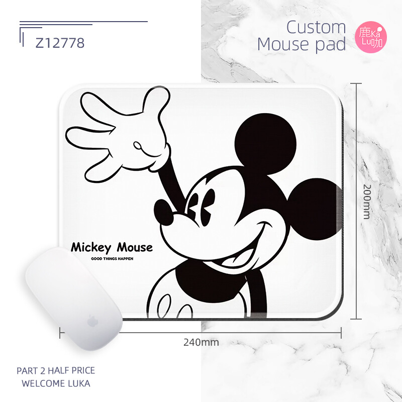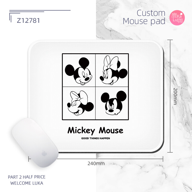 简约风米奇鼠标垫黑白色潮牌复古插画可爱文艺布面软电脑