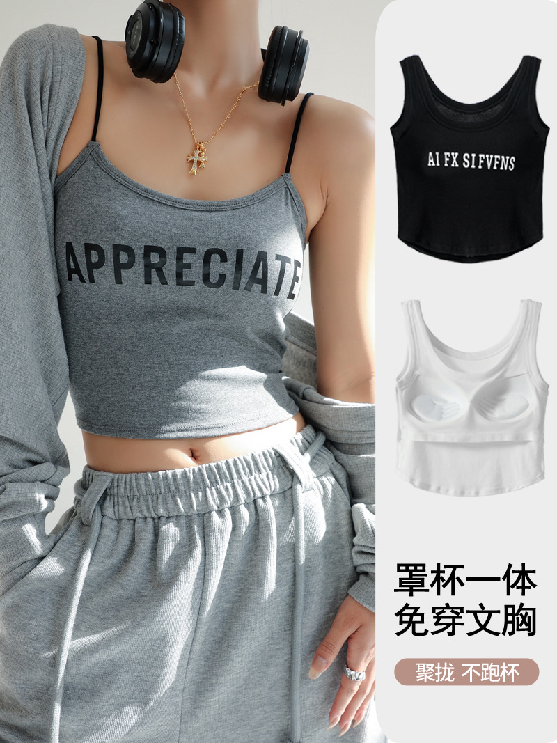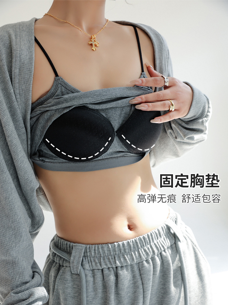 带胸垫一体抹胸防透打底吊带背心女夏季新款纯棉外穿性感美背上衣