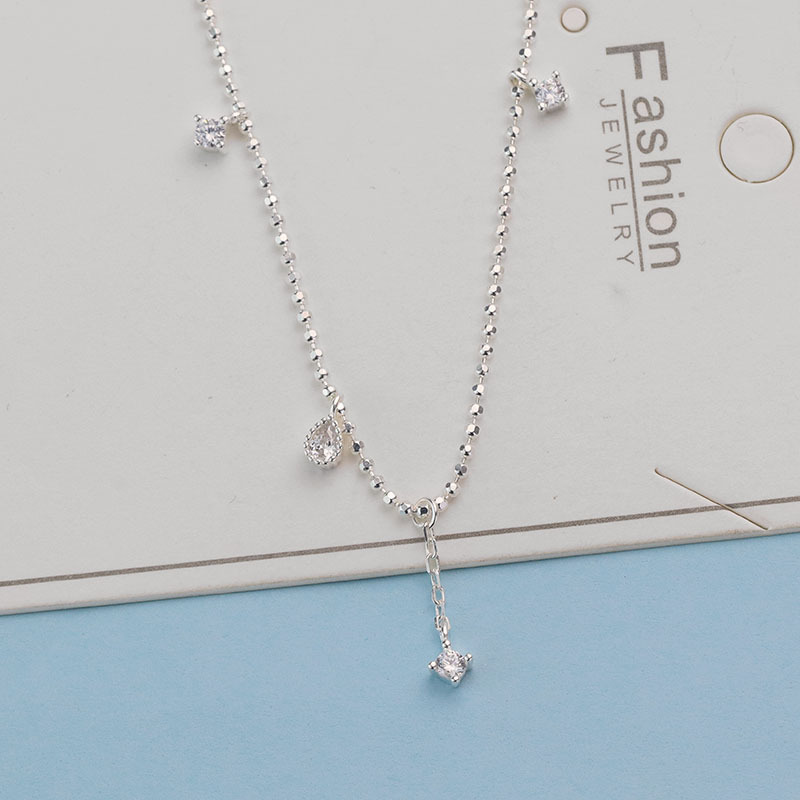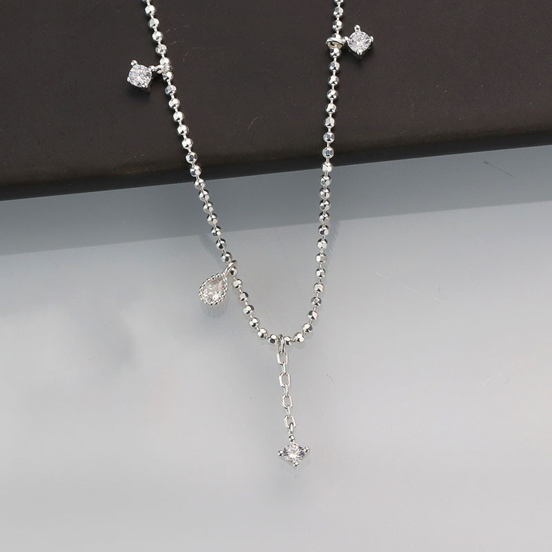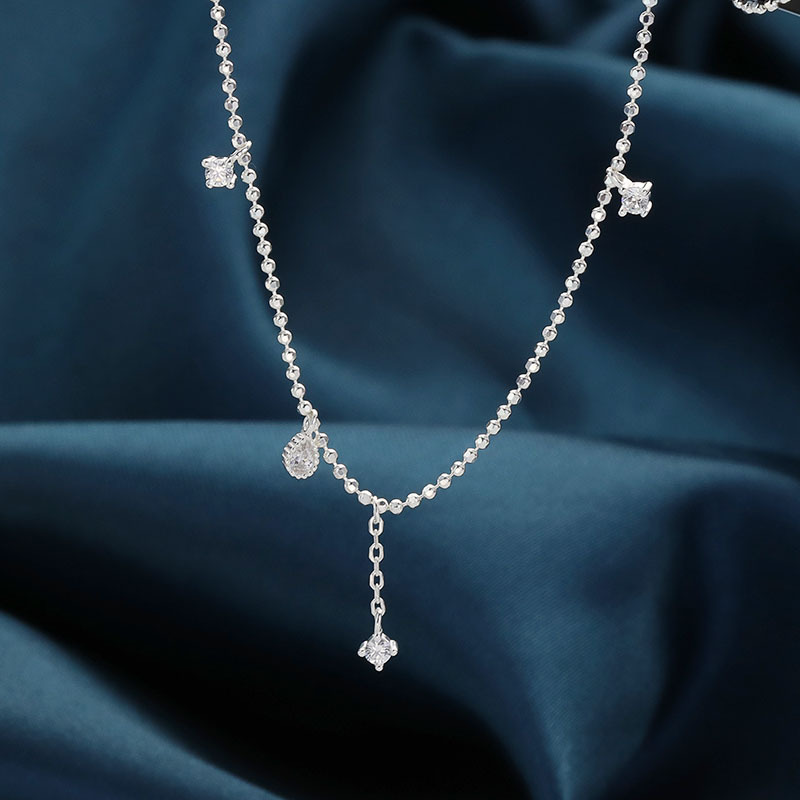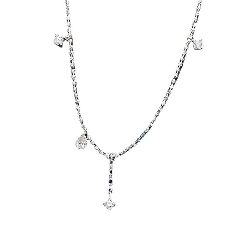 S925纯银水滴形项链女轻奢叠戴锆石吊坠时尚百搭高级感气质锁骨链