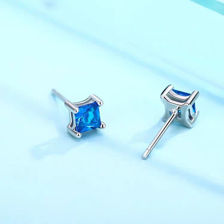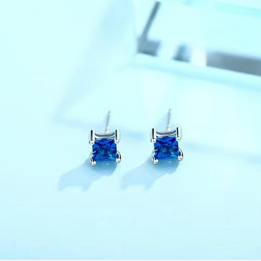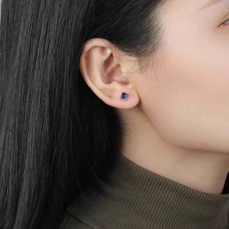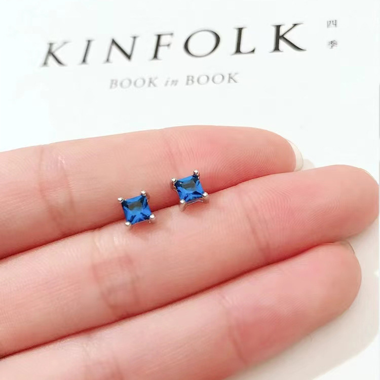 S925银蓝色水晶耳钉小简约迷你精致耳骨钉适合圆脸短发的耳饰ins