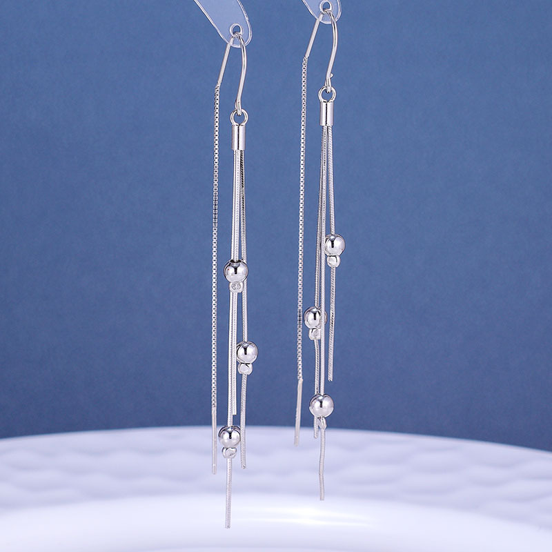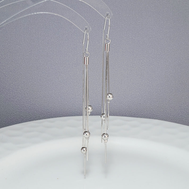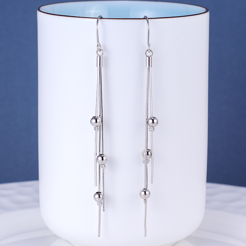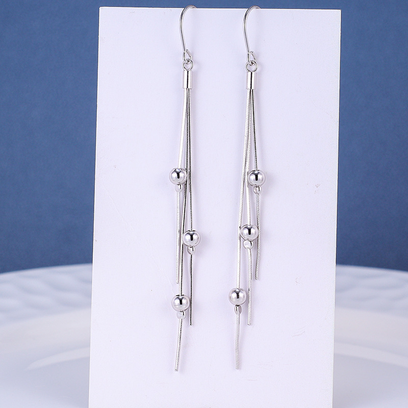 S925纯银韩版时尚长款流苏耳环小众百搭蛇骨圆珠显脸瘦耳坠