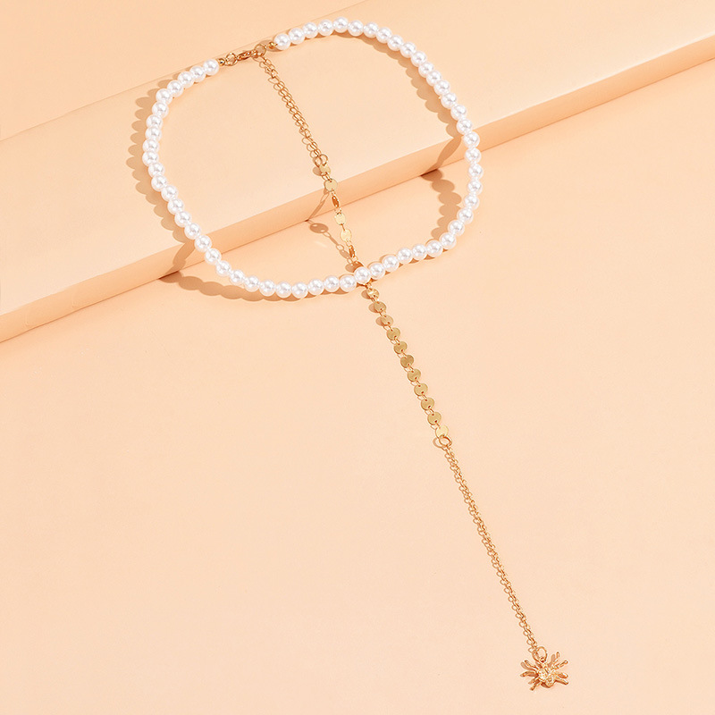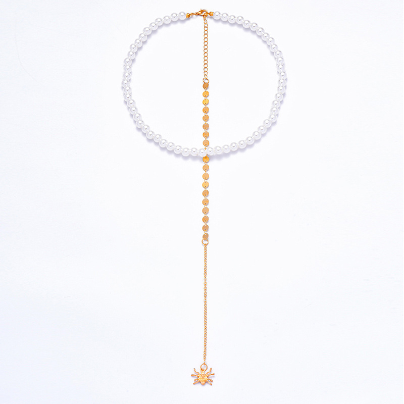 欧美潮流手工珍珠长款蜘蛛背链女 ins网红串珠几何背链饰品