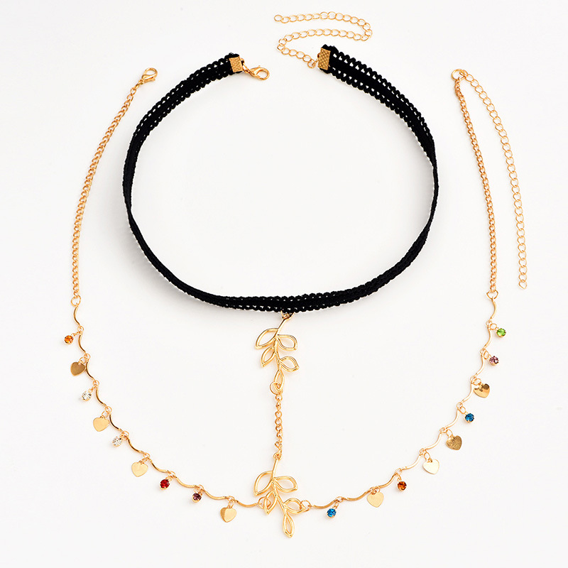 创意潮流多层弹力水钻树叶腿链女 欧美精致几何可爱身体链饰品
