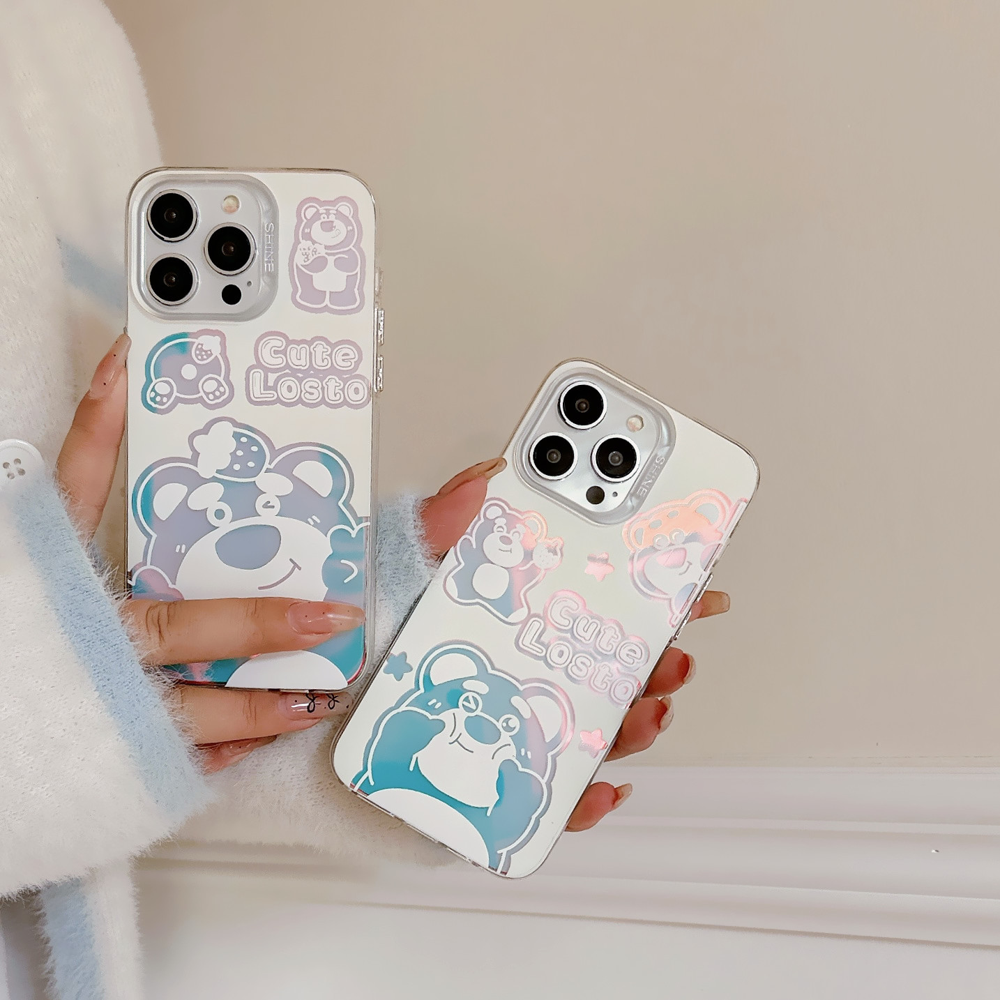 卡通变色龙草莓熊适用15ProMax手机壳14pro苹果13彩银12/11防摔女