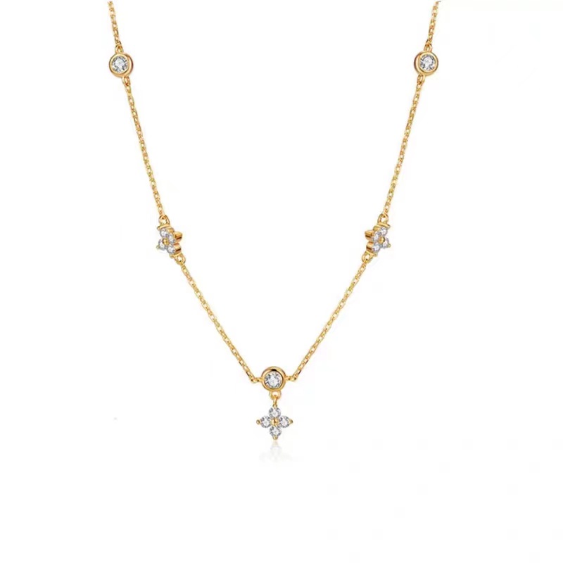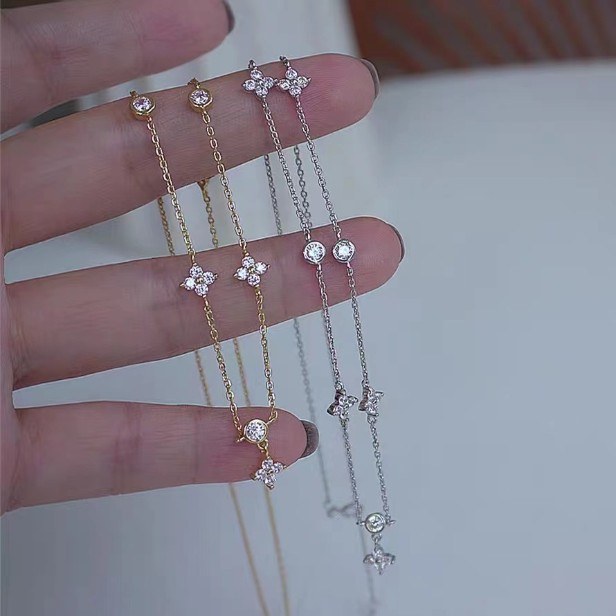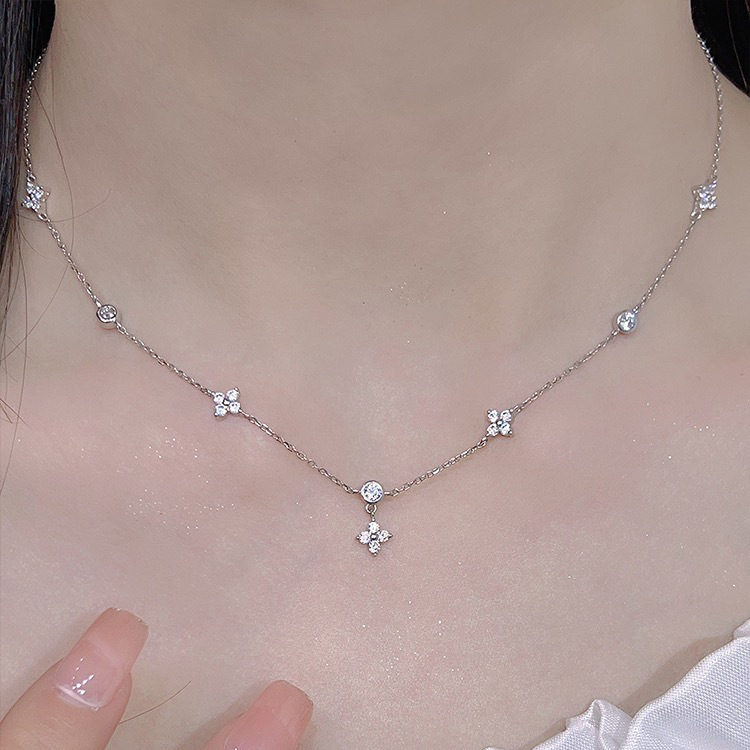 S925纯银四叶草锆石项链女小众设计锁骨链夏季新款叠搭百搭颈链潮